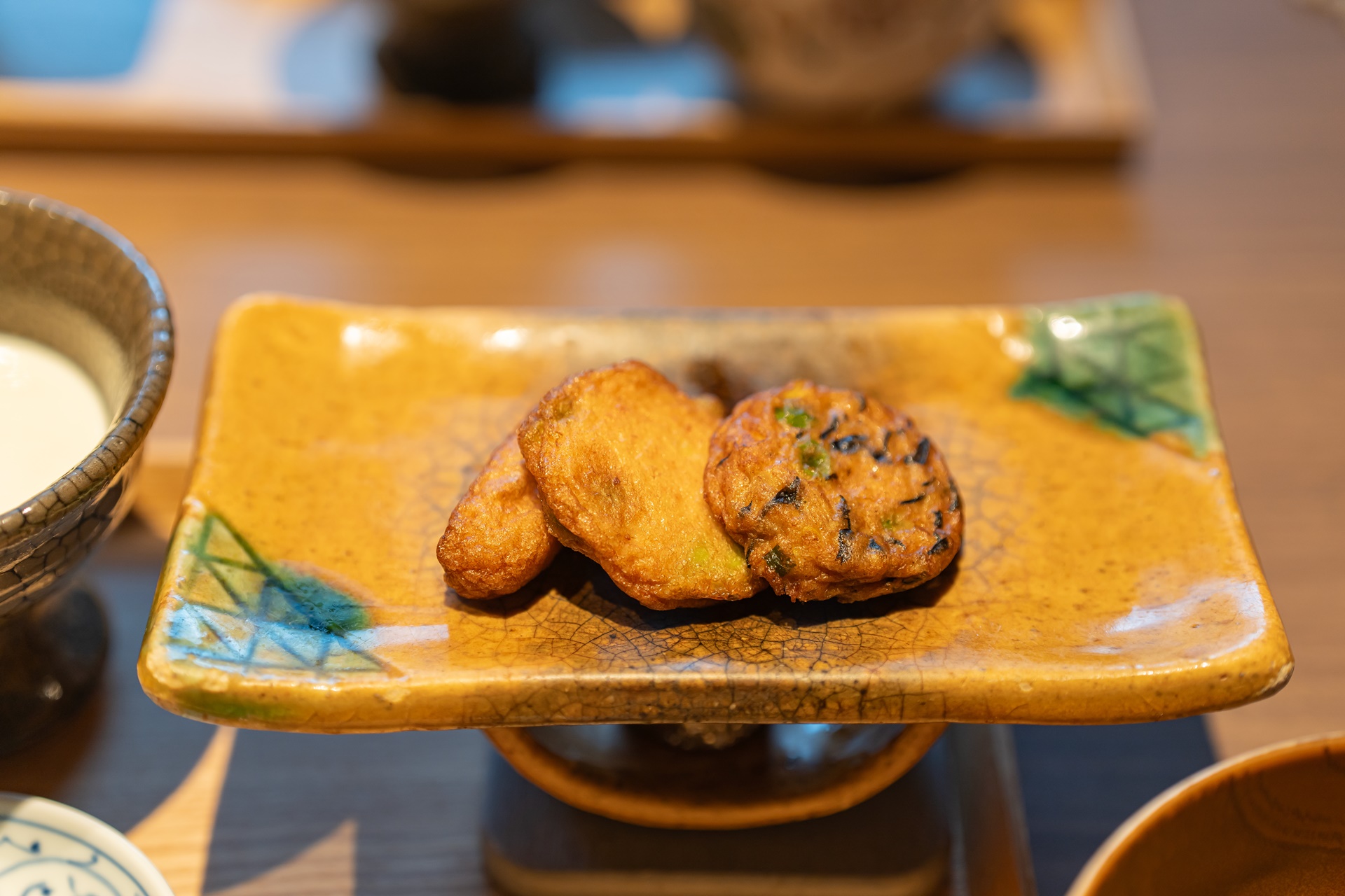 가고시마의 이쁜 도자기에 담겨 나온 튀김 요리