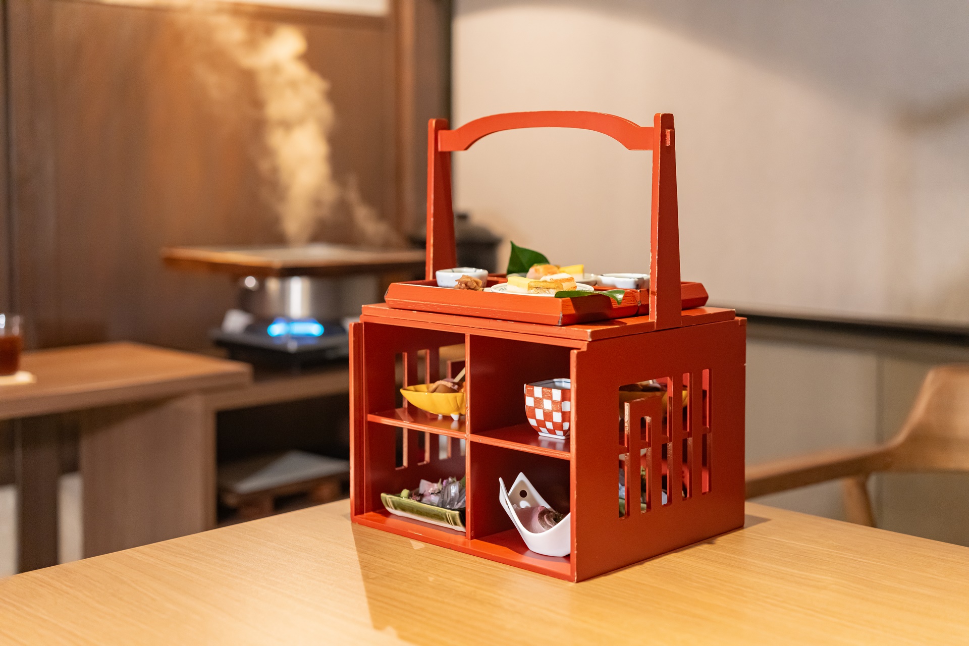 호시노 리조트 카이 기리시마의 핫슨은 이쁜 상자안에 다시 작고 이쁜 접시 안에 요리가 담겨 나옵니다.