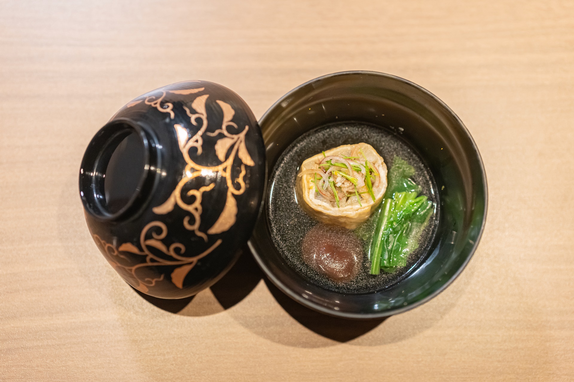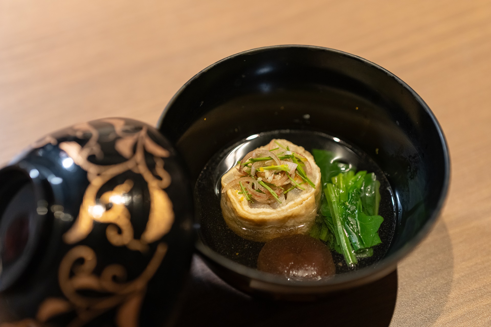 다음은 따뜻한 국물요리로 표고버섯과 유바, 장어로 만든 요리가 들어가 있었습니다.