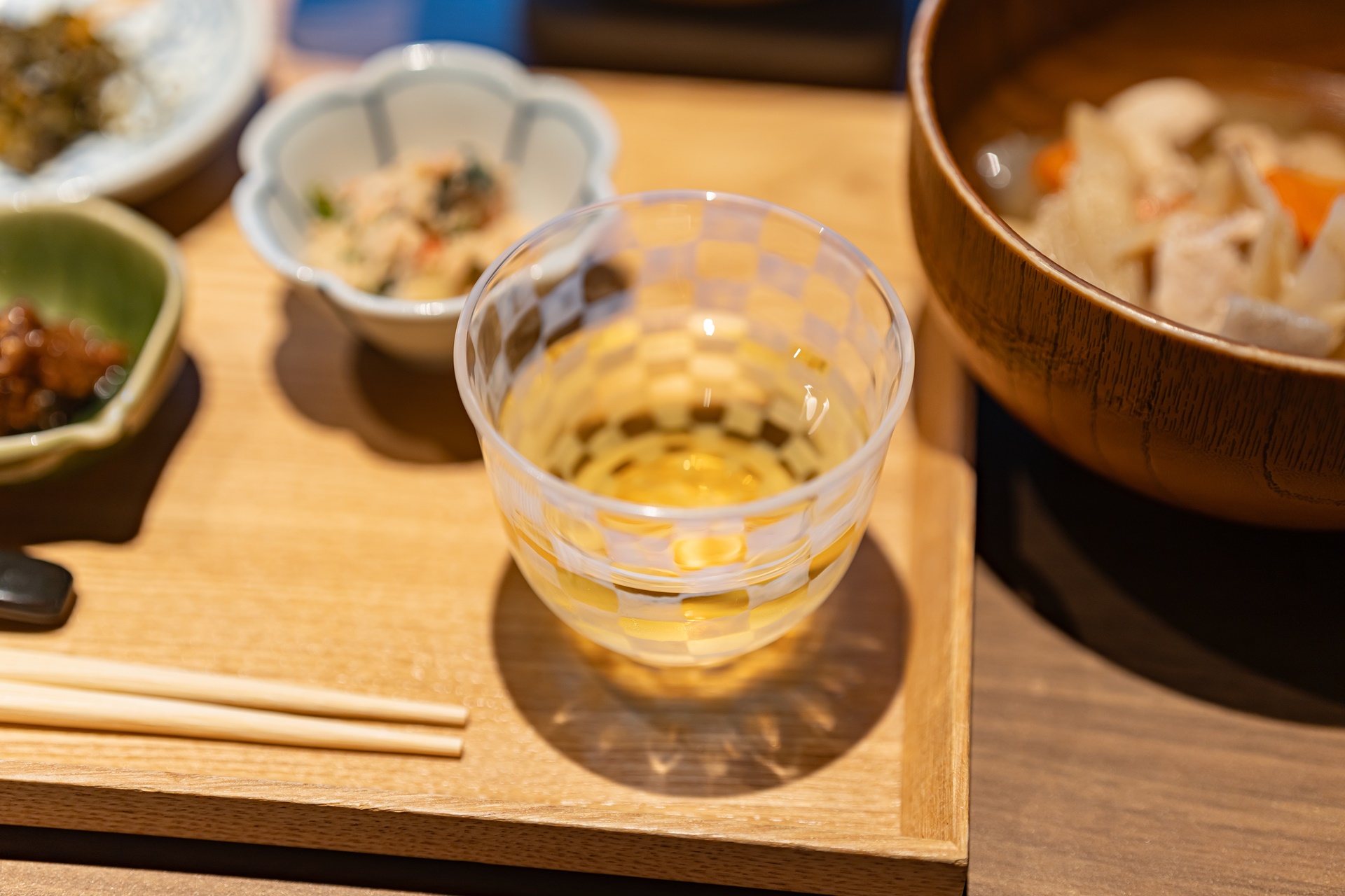 맛있는 요리와 함께 가고시마 녹차 소주 한 잔