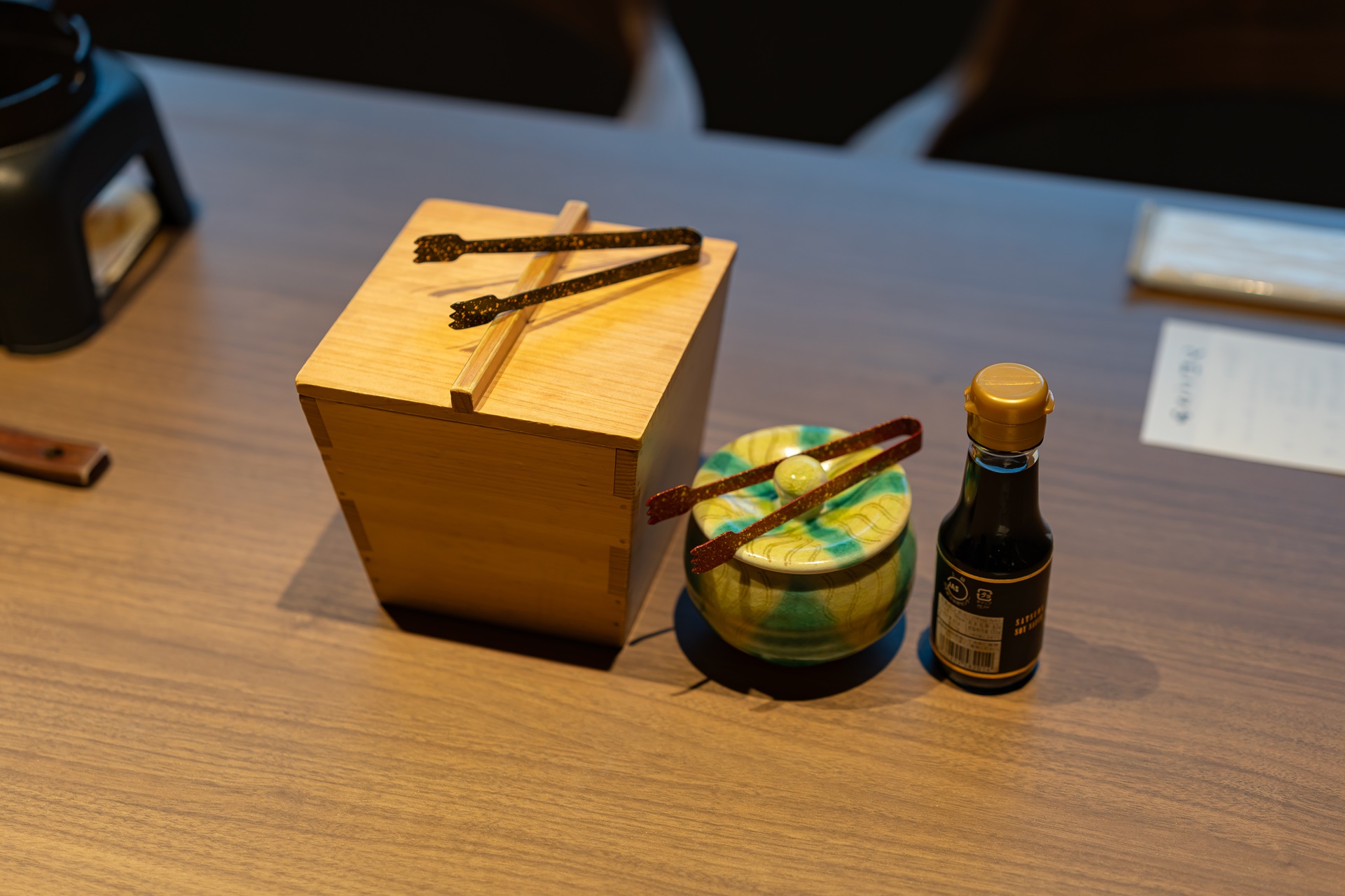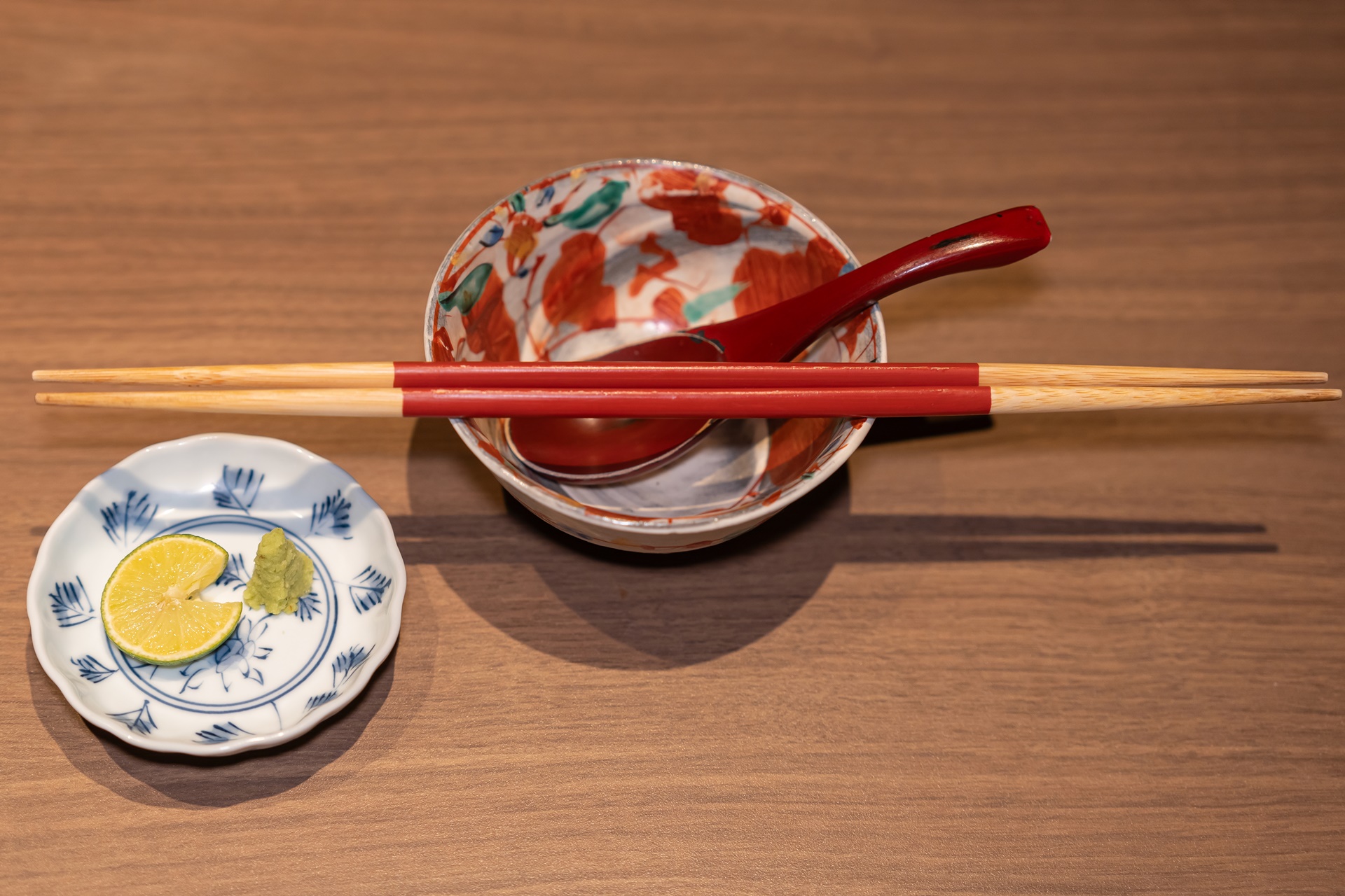 요리용 젓가락과 양념을 만들 와사비와 카보스(라임 같은 오이타현의 특산품)