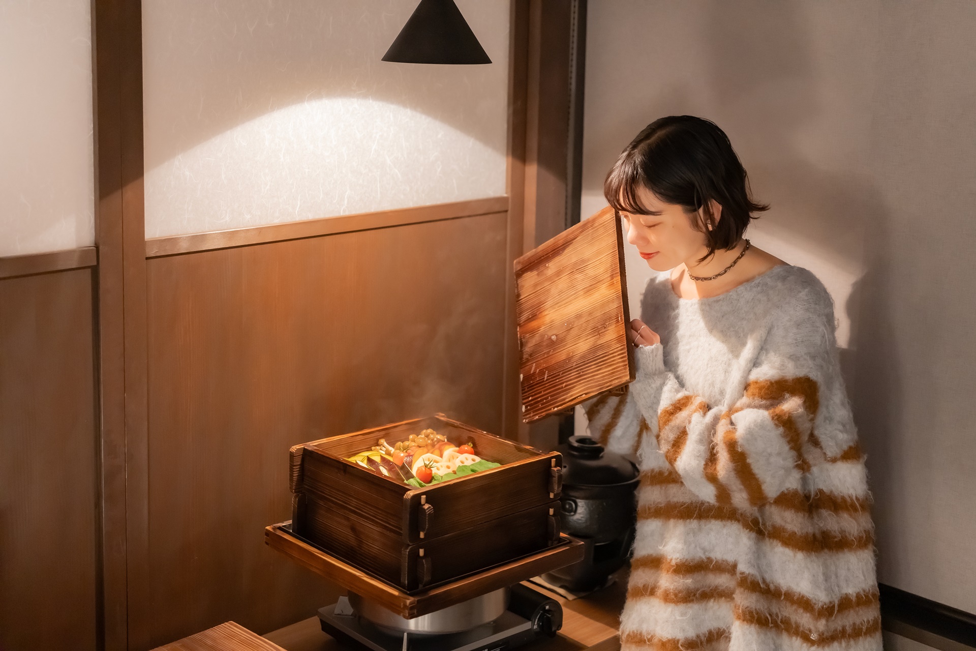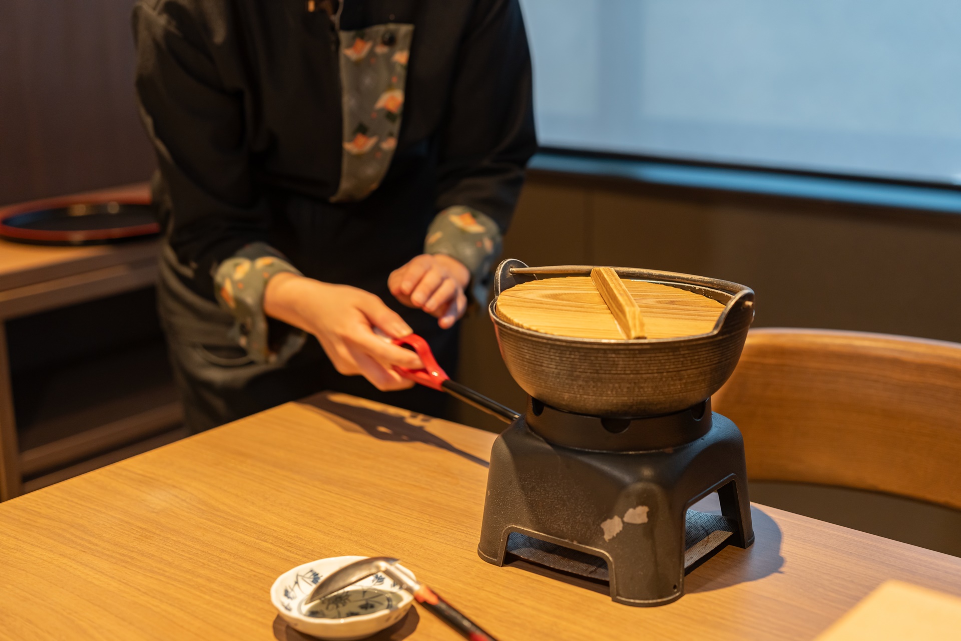 온난한 기후와 광대한 밭이 돼 있는 땅을 살려, 축산이 번성한 가고시마현. 특히 흑돼지는, 가고시마현의 특산품으로서 널리 알려지고 있습니다. 아미노산이 많이 포함되어 달고 감칠맛이 있어, 부드럽고, 지방이 산뜻한 것이 특징입니다. 카이 기리시마에서는 흑돼지를, 계절의 가이세키 요리는 가다랑어로 만든 포와 함께 샤브샤브로, 특별 가이세키 요리는 흑초와 와규와 함께 맛보는 편백나무찜으로 준비하고 있었습니다.