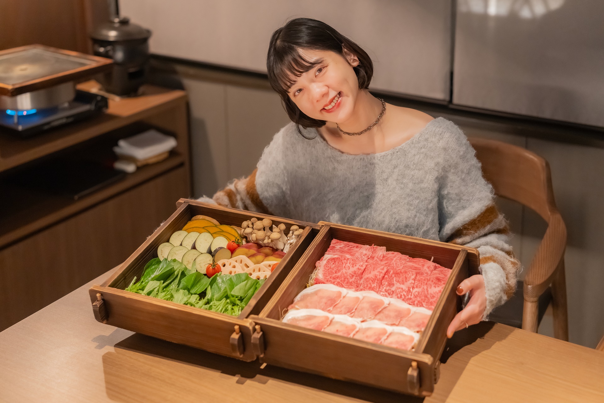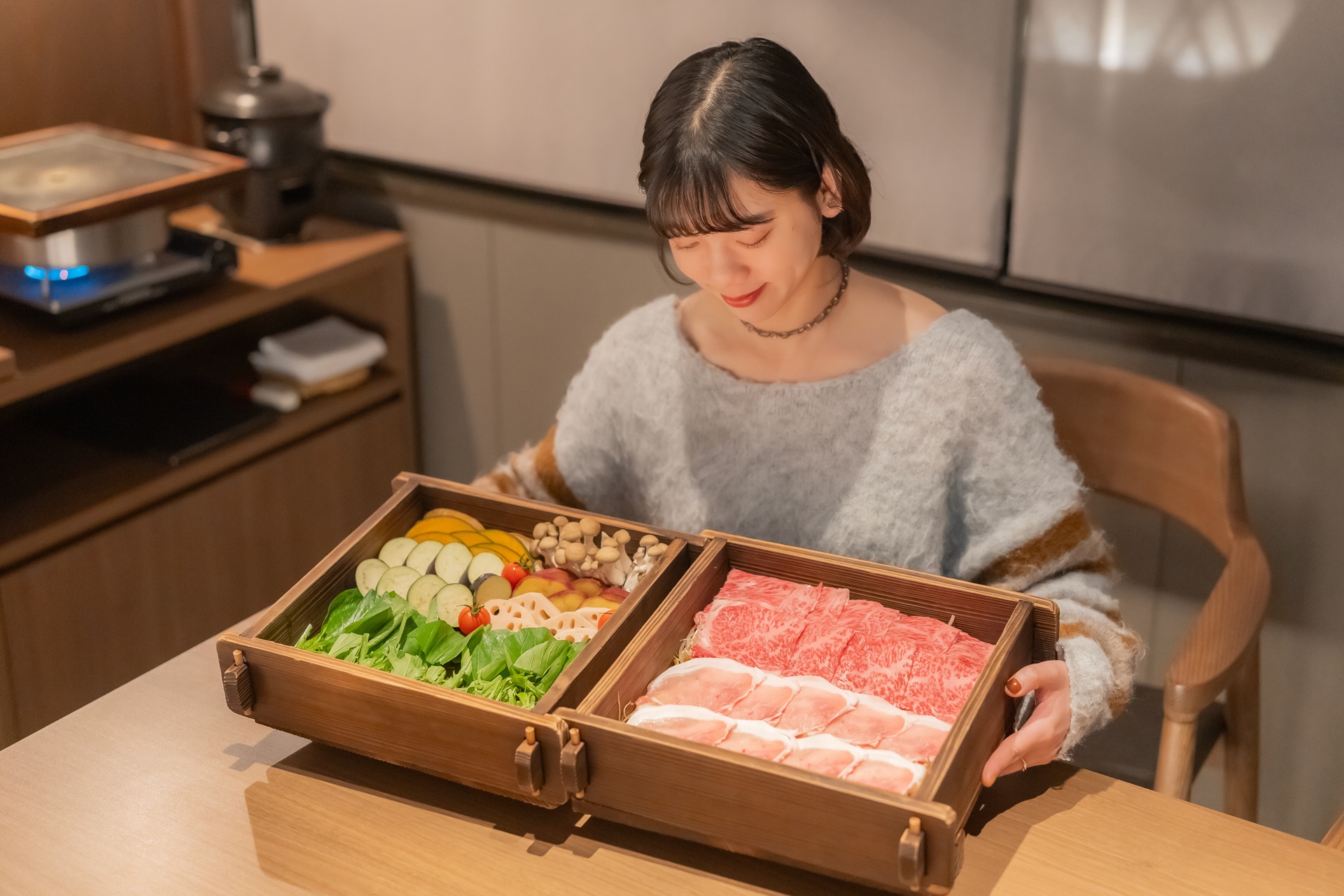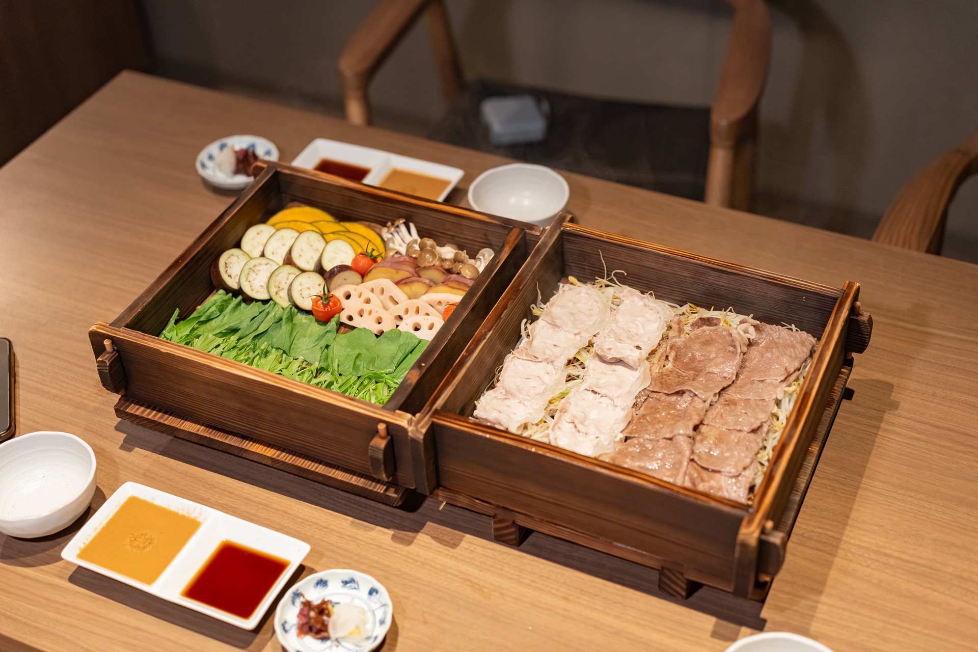 메인 요리는 샤브샤브 요리 입니다.