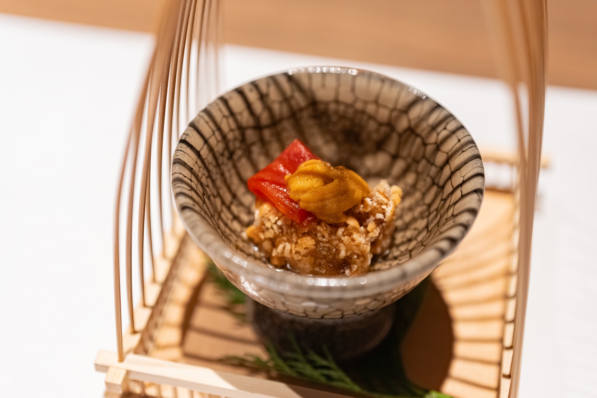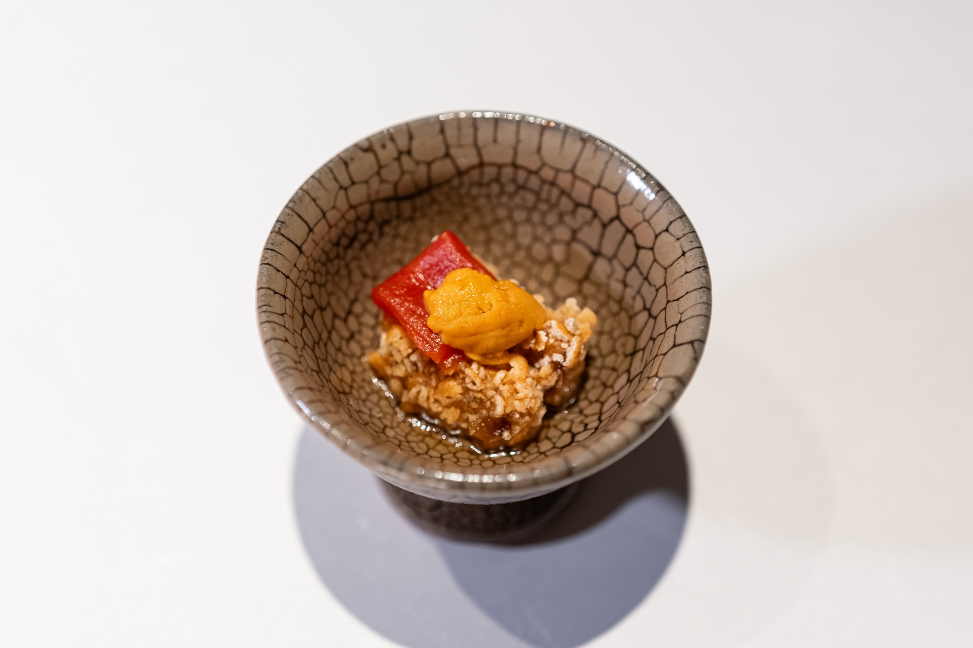 부드러운 크림 두부 위에 우니가 올려져 있었습니다.