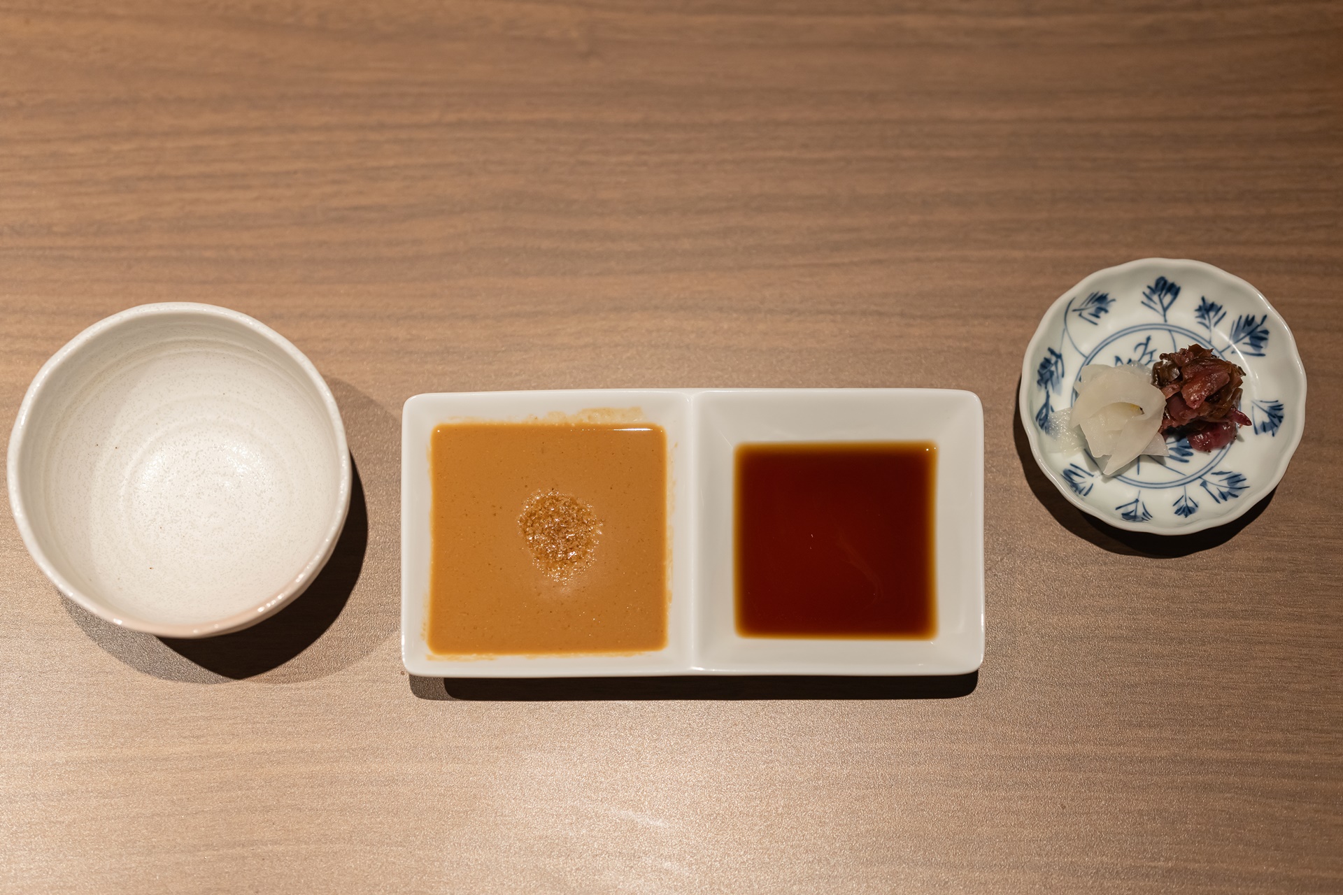 함께 먹을 폰즈(간장), 참깨소스, 절임반찬 등이 같이 나왔습니다.