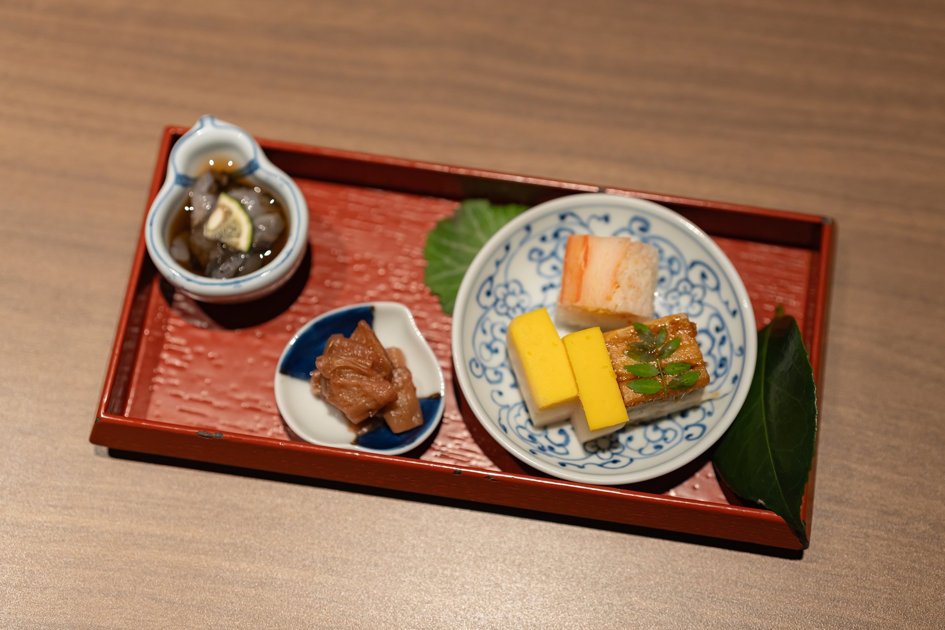 호시노 리조트 카이 기리시마의 핫슨은 이쁜 상자안에 다시 작고 이쁜 접시 안에 요리가 담겨 나옵니다.