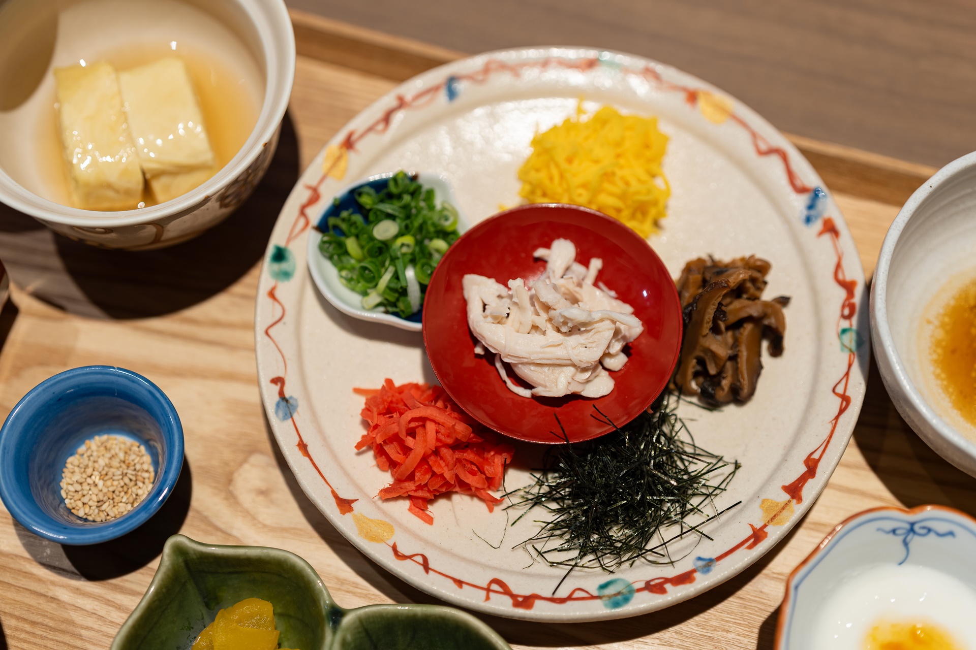 이날은 오차즈케를 만들어 먹을 수 있게 다양한 토핑이 반찬으로 나왔습니다.