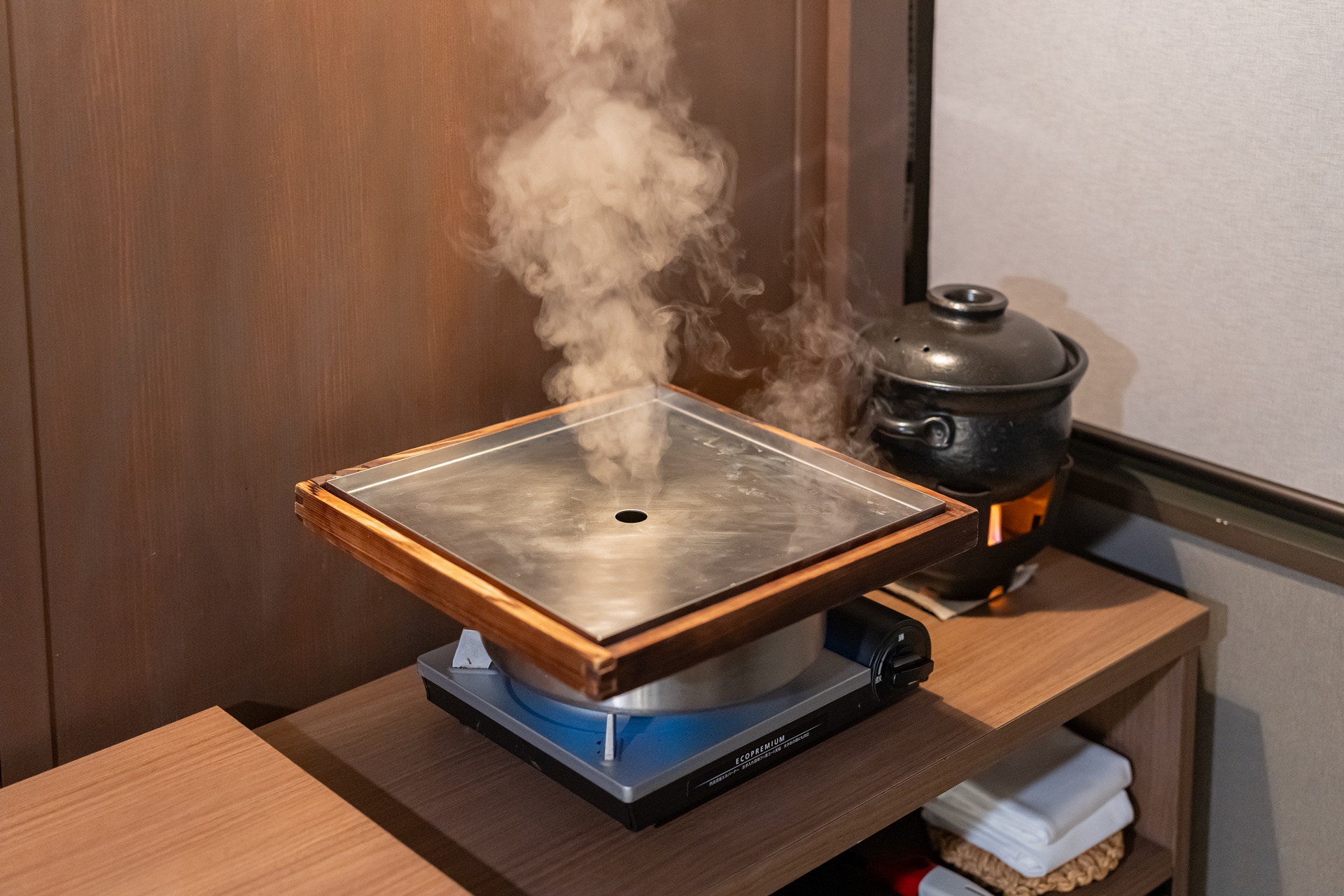 식사 장소의 한 편에서는 솥밥과 다음요리를 위한 준비를 하고 있었습니다.