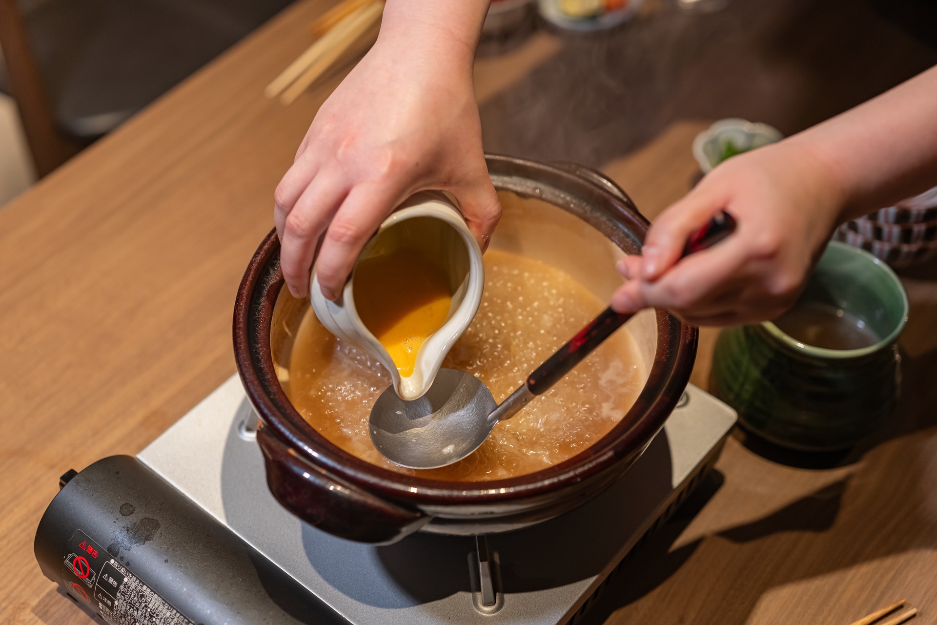 마지막으로는 계란을 풀과 밥을 넣어 죽을 만들어 먹습니다.