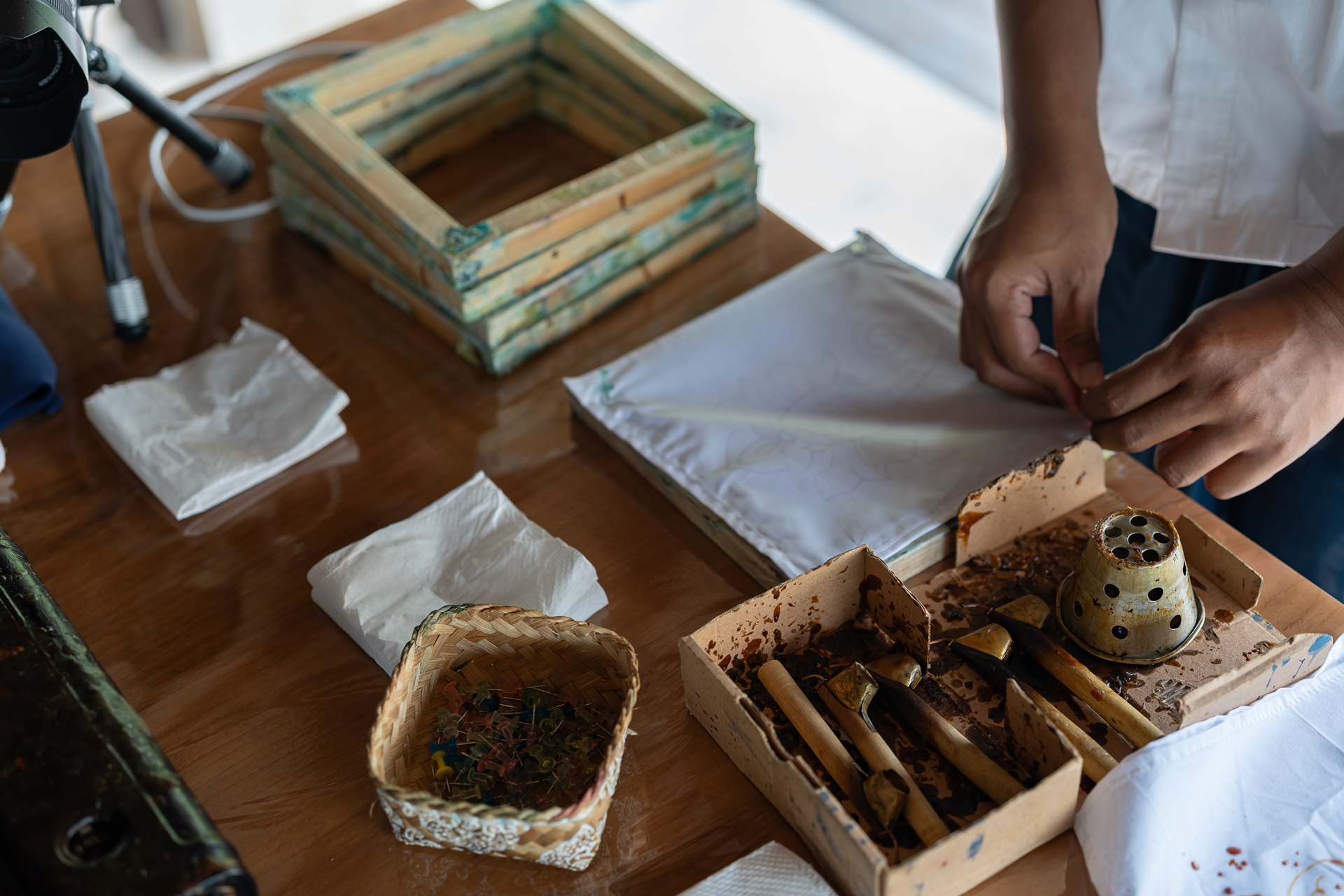 인도네시아의 바틱은 칸팅 이라는 도구를 사용하여 흰 천에 왁스 저항 염색 기술을 적용하는 것으로 2009년 10월 2일 인도네시아의 바틱을 인류의 무형 유산으로 공식 인정 유네스코에 등록되었습니다.
