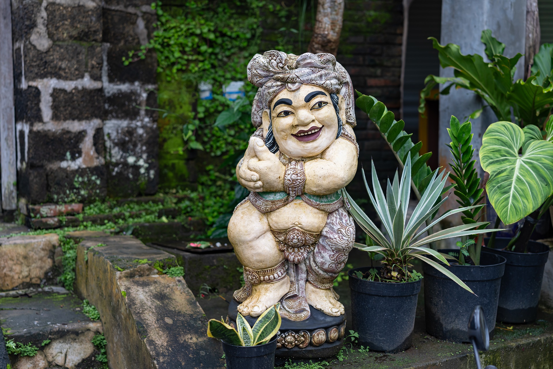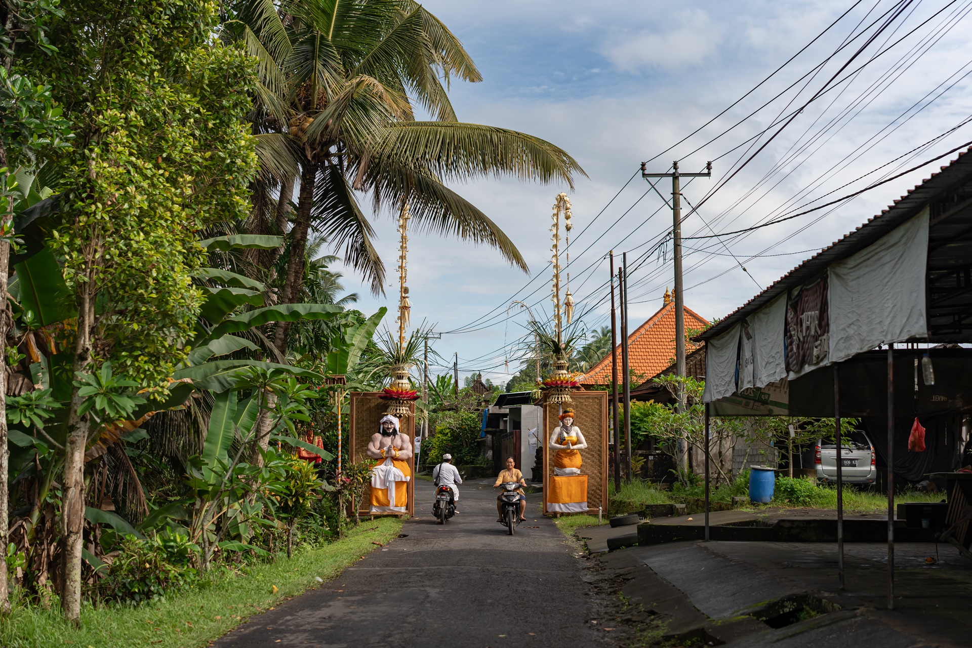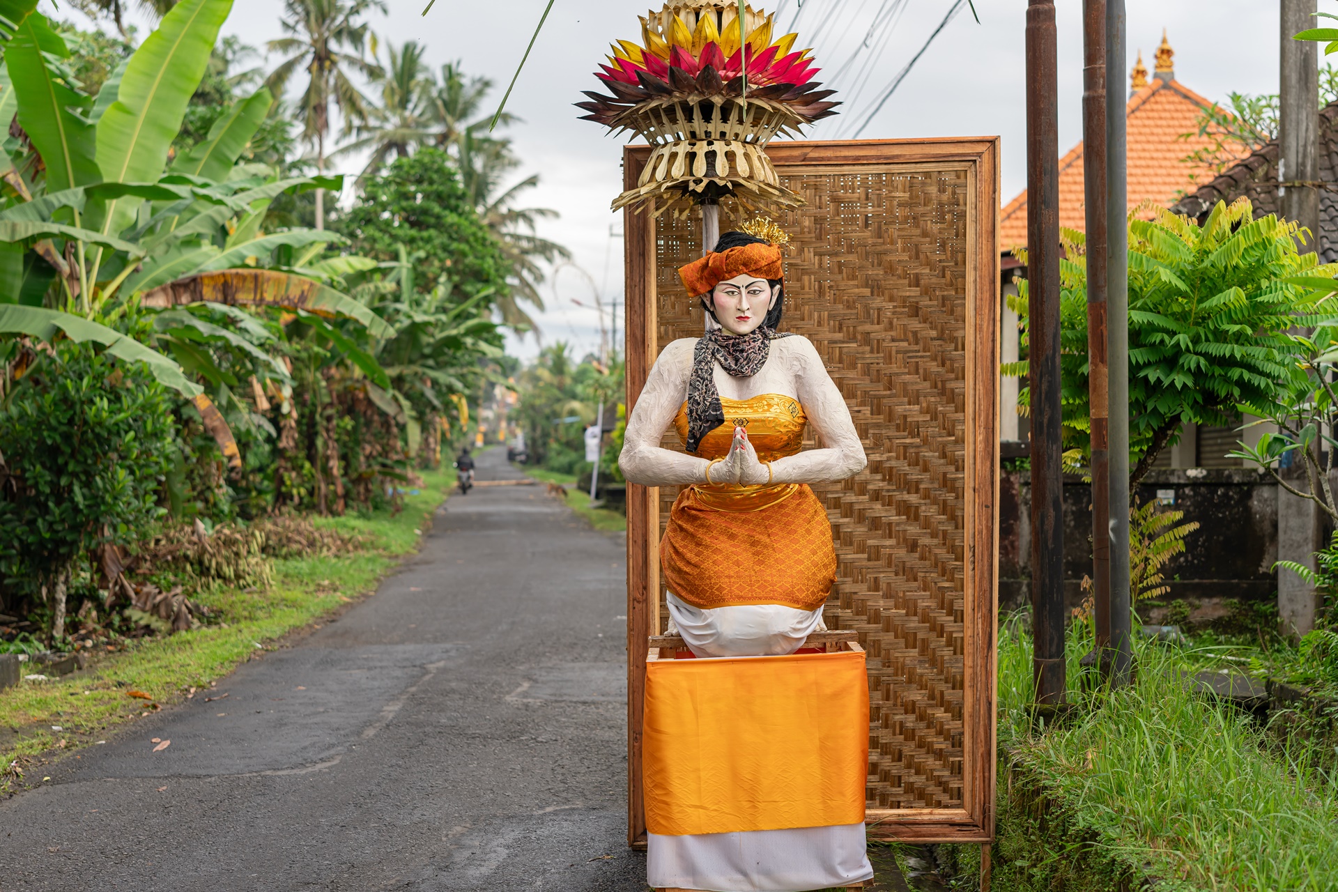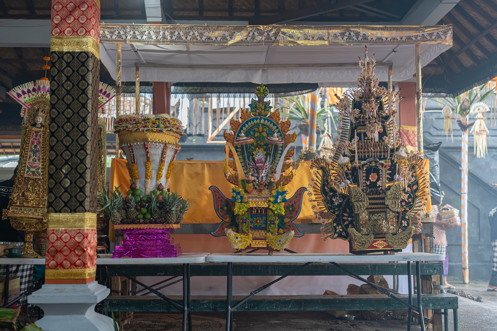 발리의 축제 오브제에 관한 설명을 듣습니다.