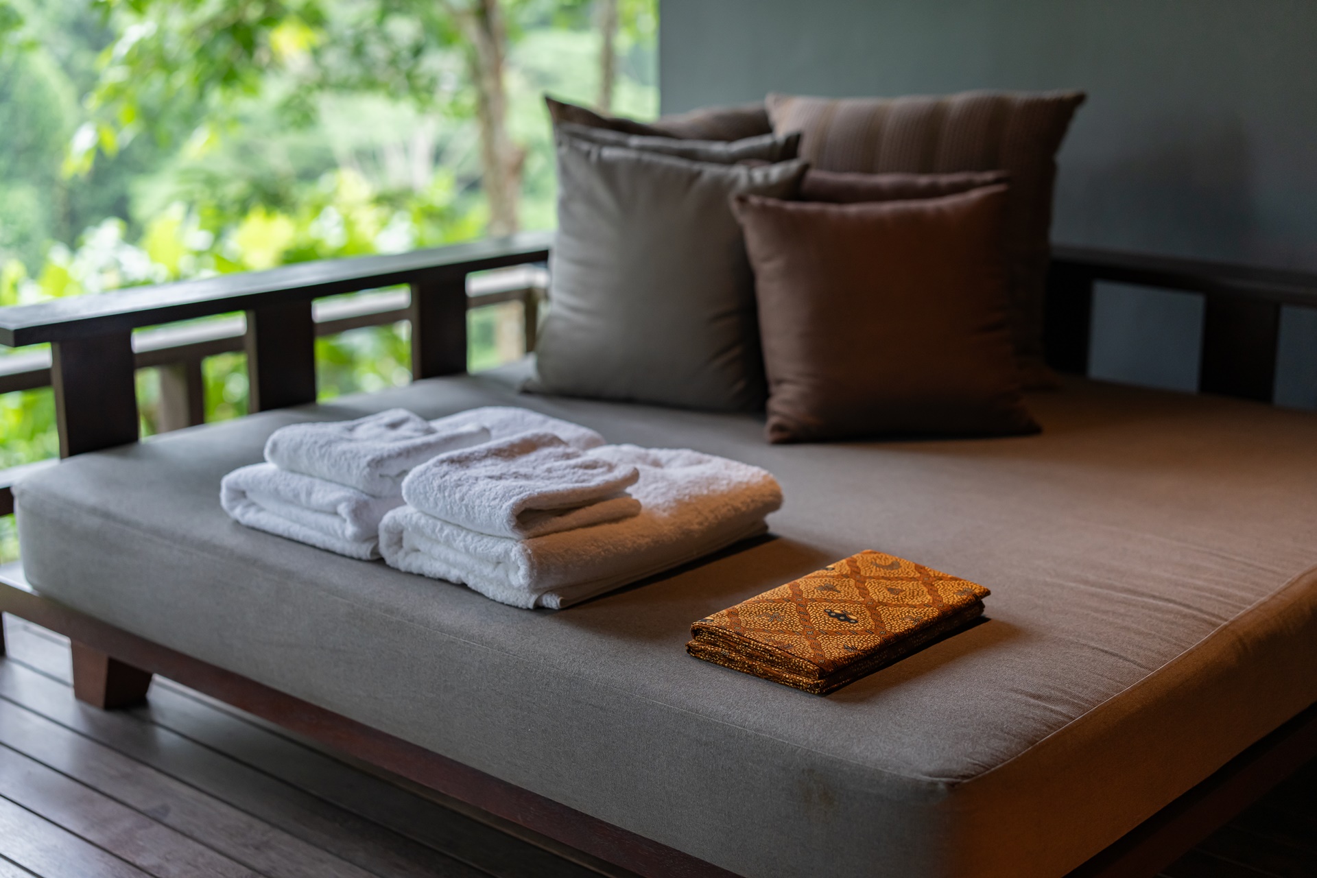정갈하게 놓여있는 수건과 기념으로 가져갈 수 있는 발리의 바틱사야 천