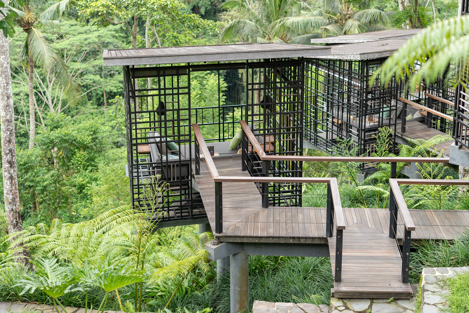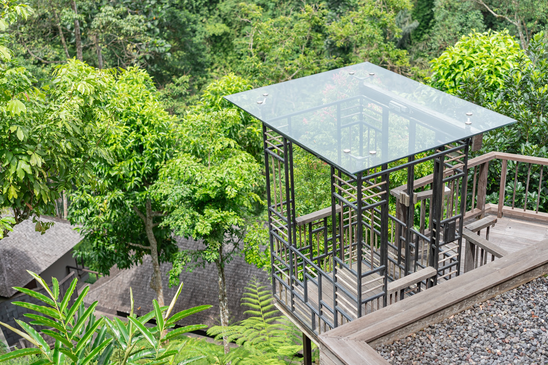 카페 가제보는 우붓의 정글 위에 붕 떠 있는 나무 위에 있는 것 같은 느낌을 주며 공중에 떠 있는 새장에 들어간 듯한 느낌을 받을 수 있었습니다.