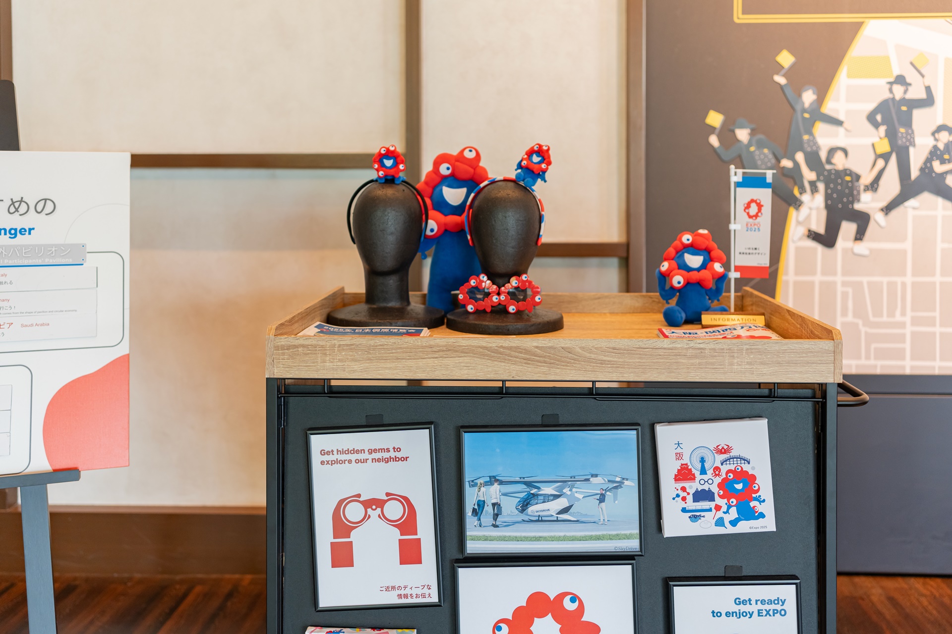 매일 밤 그날 그날의 엑스포에 대한 최신 정보와 엑스포에 대한 팁 등을 안내하는 행사를 열고 있으며 엑스포의 하늘을 나는 자동차도 전시, 직접 타볼 수 있는 기회가 주어집니다. 또한 라운지에는 1970년 오사카 박람회 자료를 전시하고 있으며 호텔의 주변을 설명하는 고킨조 맵 주변에서는 엑스포의 정보와 엑스포 공식 캐릭터인 먀쿠먀쿠의 기념품을 체험해 볼 수 있습니다.