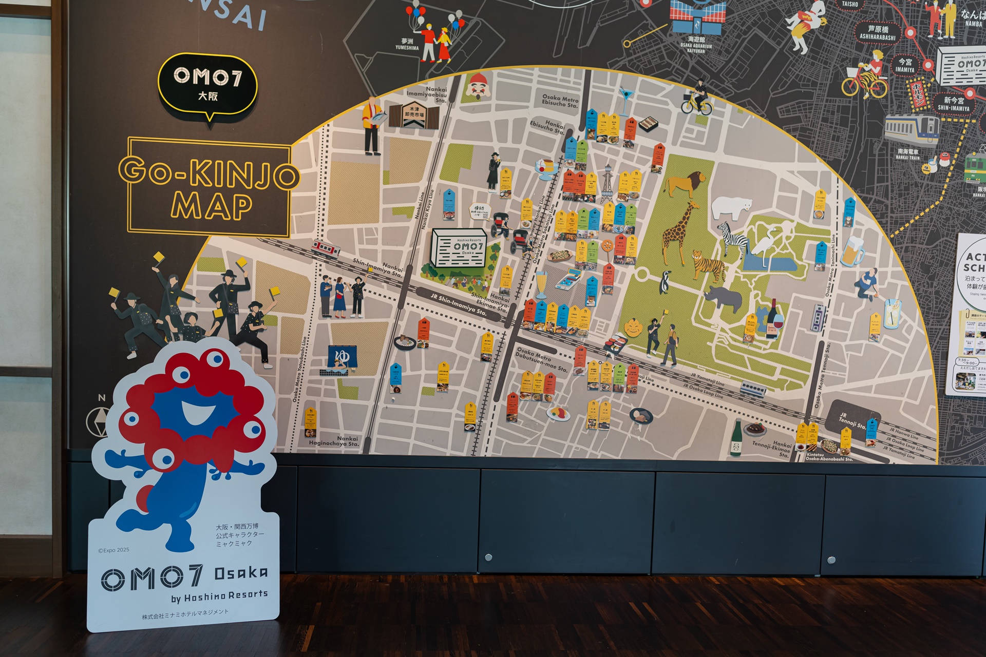 OMO7 오사카에는 고킨조 맵이라는 호텔 주변을 설명하는 맵이 있으며 호텔의 직원인 OMO 레인저가 지도와 함께 다양한 설명을 합니다. 이번 엑스포 기간에는 고킨조 가이드 OMO 레인저가 실제로 엑스포에 찾아가 발견해 온 비장의 정보를 통해, 엑스포를 즐기는 방법을 철저하게 제안해 드립니다. (엑스포 안내 시간 14:00~17:00)