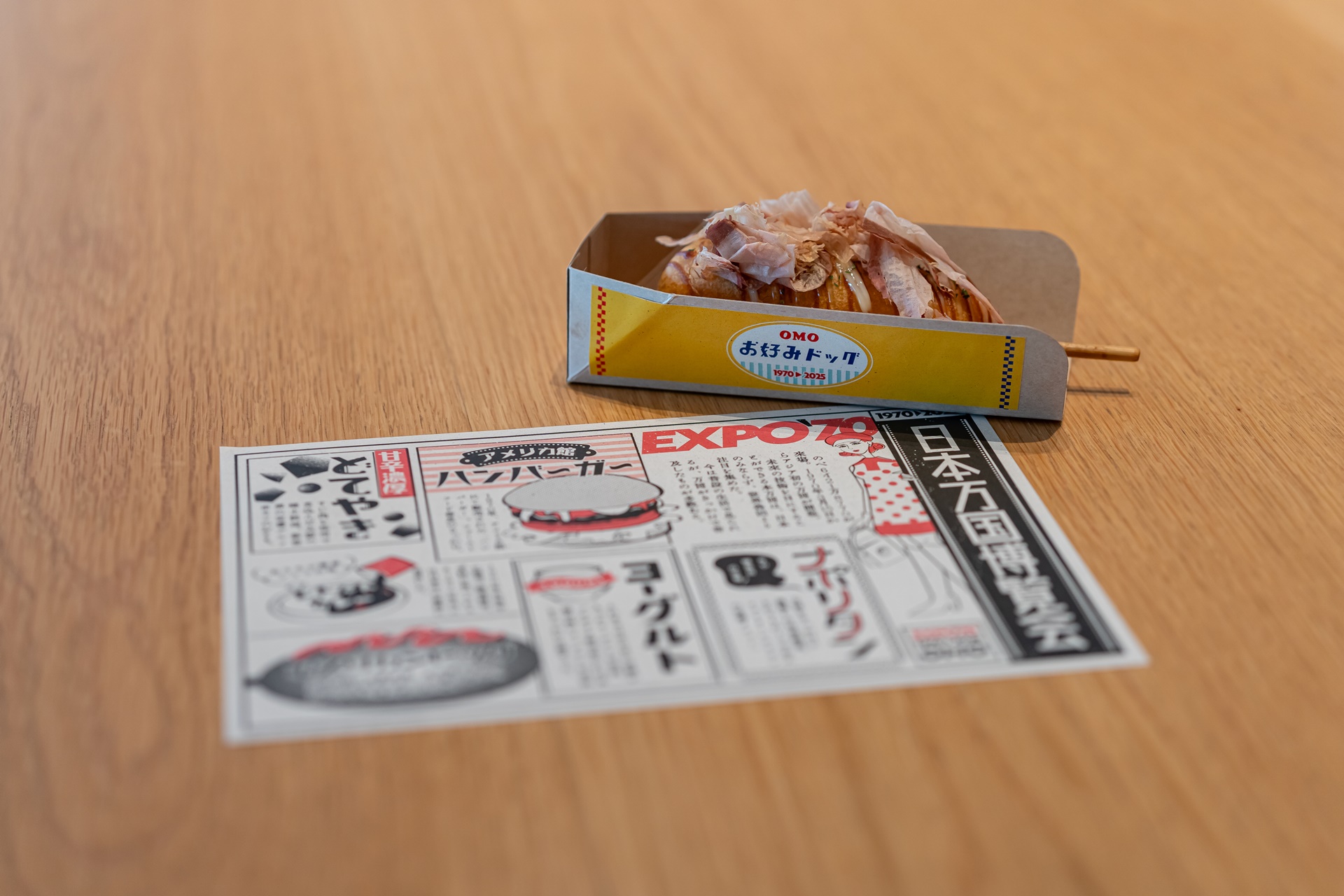 이번 엑스포에서는 엑스포 한정 메뉴로 지난 오사카 엑스포가 개최된 1970년에 유행한 양식 문화와 오사카의 먹거리를 콜라보한 엑스포 개최 기간 한정메뉴가 판매되고 있습니다.