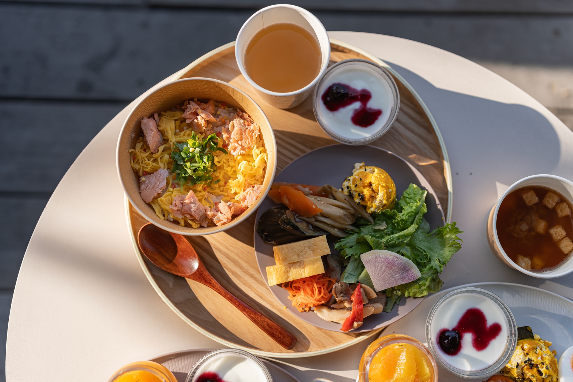 OMO7 오사카 by 호시노 리조트에서는 카페 조식과, 레스토랑 뷔페 조식으로 나뉘며 카페 조식은 메뉴 4가지 중 하나를 선택하고 스프, 음료 무제한으로 맛볼 수 있습니다. 가격은 1,800엔