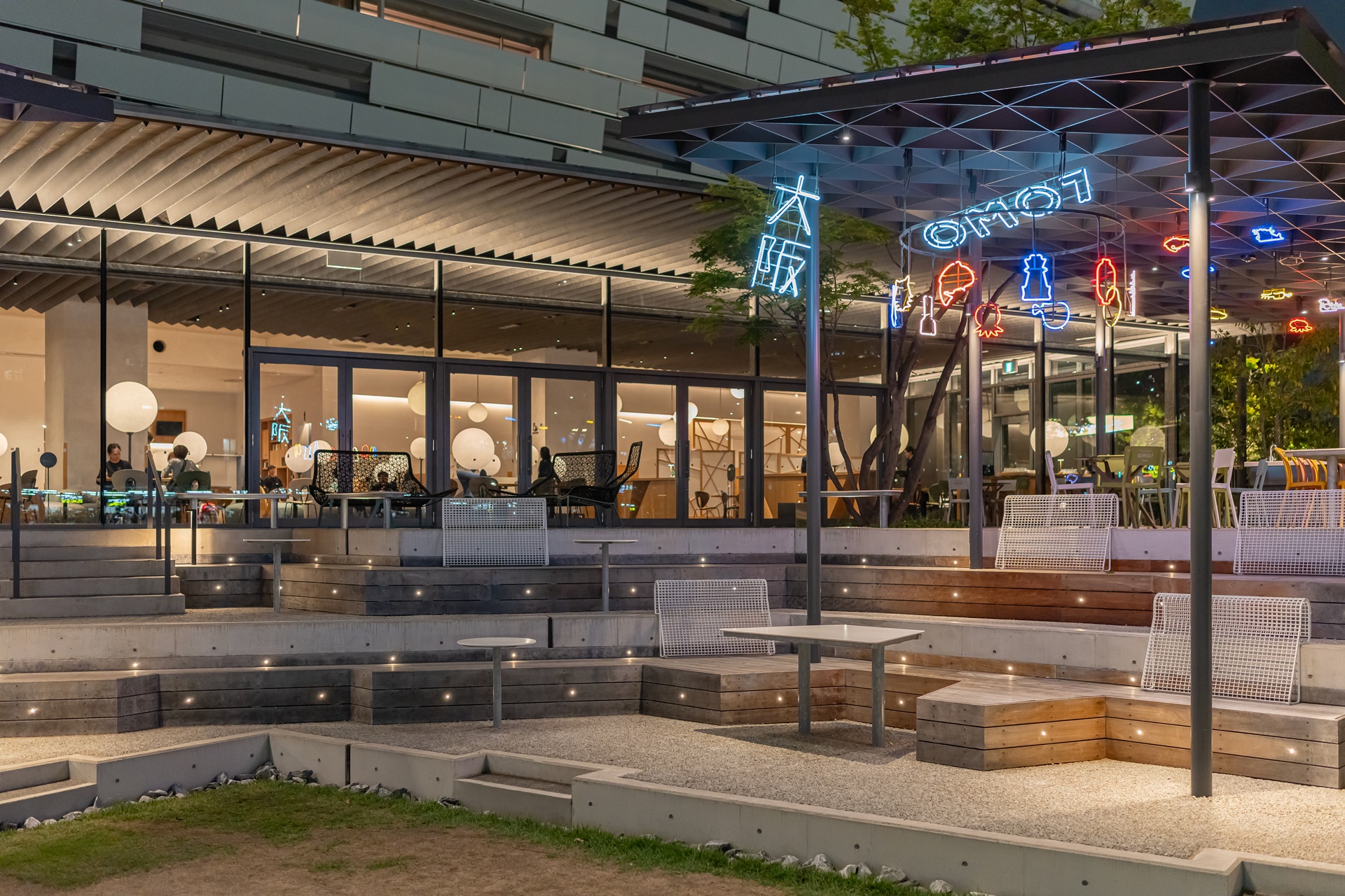 호텔 정원 곳곳에는 오사카를 모티브로 한 나니와 네온아트