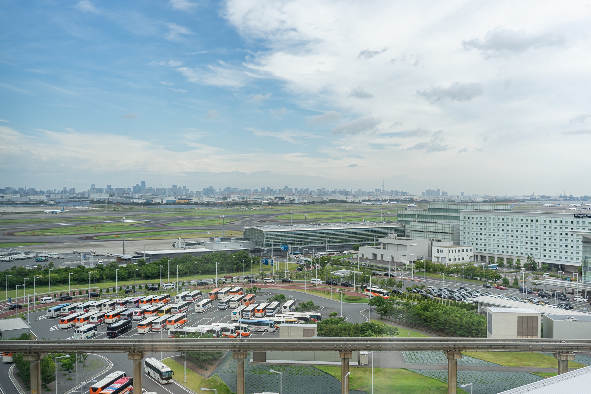 도쿄의 멋진 풍경을 감상하고 하네다 공항에 출 도착하는 항공기를 관찰 합니다.