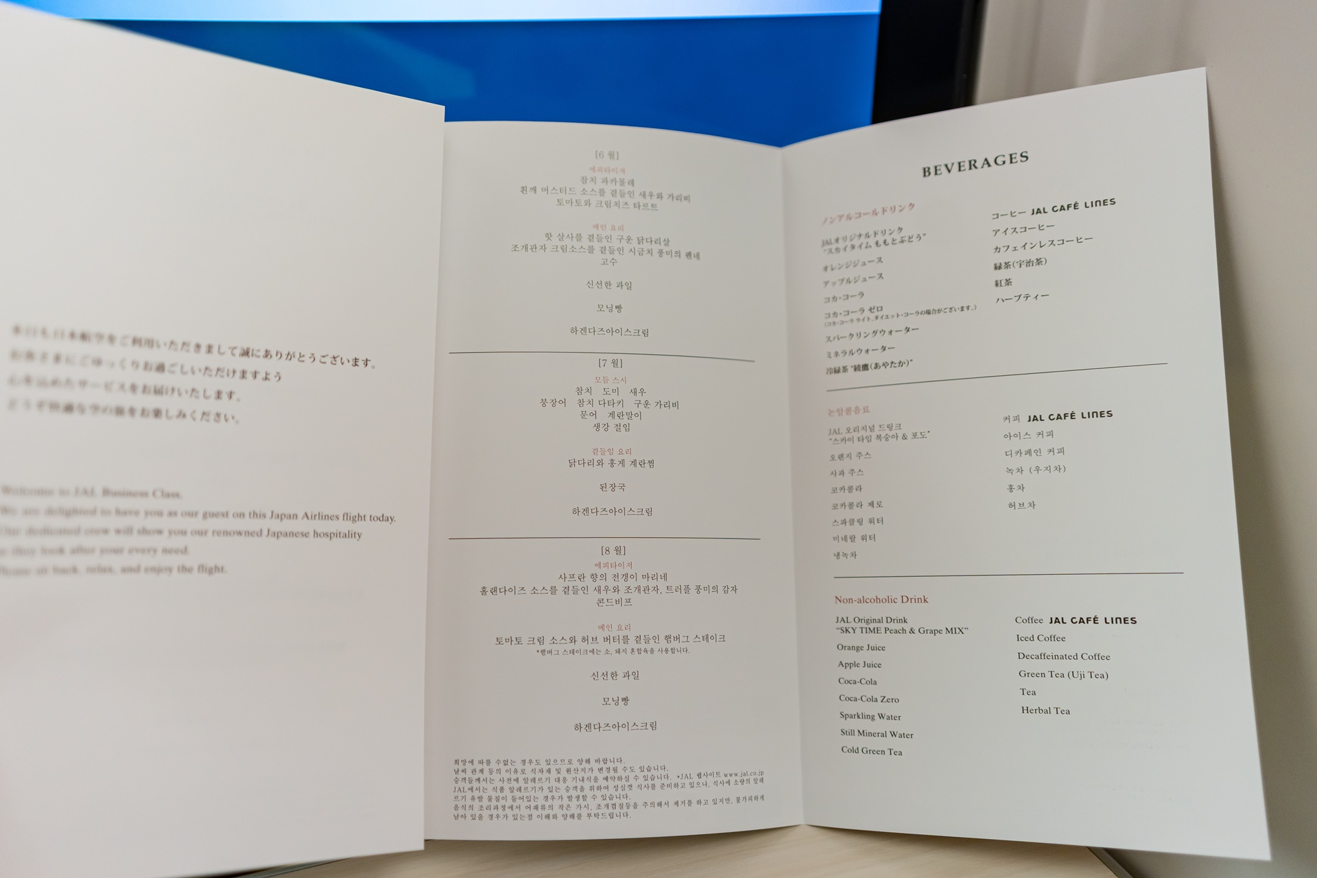 오늘의 비즈니스 기내식은 요렇게, JAL은 매달 메뉴가 바뀌고 있었습니다.