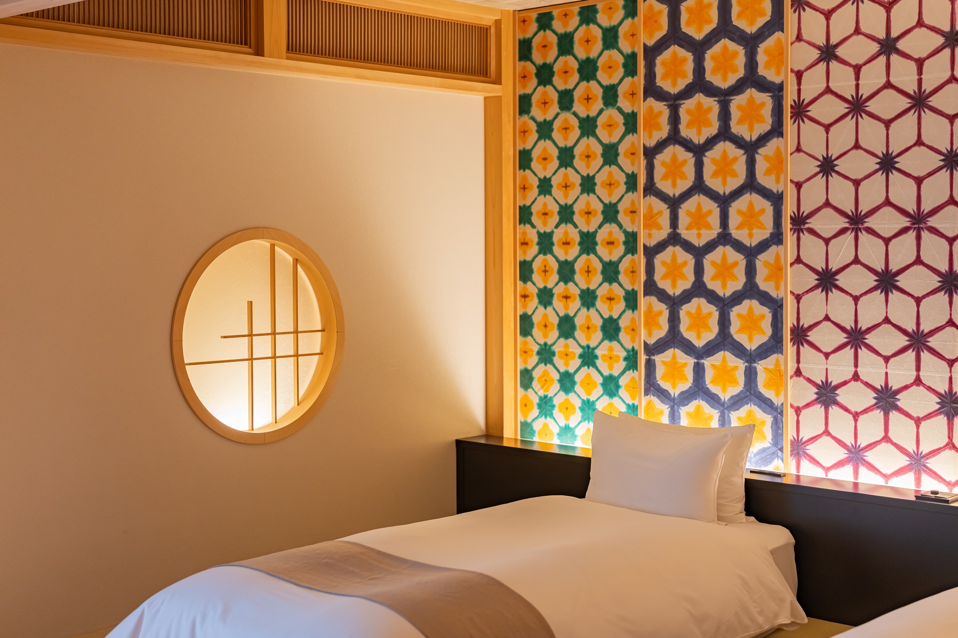 객실 문을 열면 따뜻한 나무 향과 함께 탁 트인 창으로 오토즈레 강의 풍경이 들어옵니다. 방 안은 다다미 바닥과 현대적인 가구가 절묘하게 조화를 이루며, 테이블 위에는 이 지역을 대표하는 하기야키 도자기와 오우치누리 칠기가 놓여 있어 머무는 순간부터 나가토의 전통과 만나는 듯합니다. 객실은 총 40실로 규모는 크지 않지만, 오히려 아늑함과 정갈함이 살아 있어 머무는 즐거움 자체를 배려한 듯합니다.