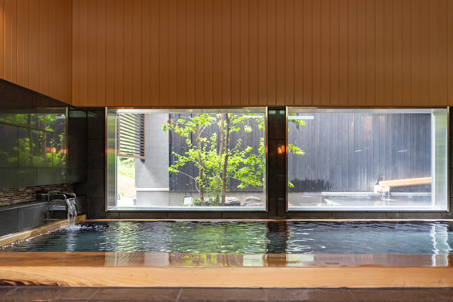 호시노 리조트 카이 나가토의 하이라이트는 역시 온천입니다. 600년 역사를 지닌 나가토 유모토 온천의 강알칼리성 온천수는 일본에서도 손꼽히는 미인탕으로, 피부를 매끄럽게 해주는 것으로 유명합니다. 천장까지 시원하게 트인 대욕장에서는 유리창 너머로 강과 숲이 어우러진 풍경을 즐길 수 있고, 노천탕에 몸을 담그면 계절마다 달라지는 자연이 그대로 눈앞에 펼쳐집니다. 봄에는 벚꽃이 물 위에 흩날리고, 여름에는 푸른 숲이 시원한 그늘을 드리우며, 가을에는 붉게 물든 단풍이, 겨울에는 하얀 눈이 온천의 수증기와 어우러져 몽환적인 풍경을 만들어냅니다. 일부 객실에는 전용 온천탕이 마련되어 있어, 조용히 프라이빗한 시간을 즐기고 싶은 여행자에게 제격입니다.