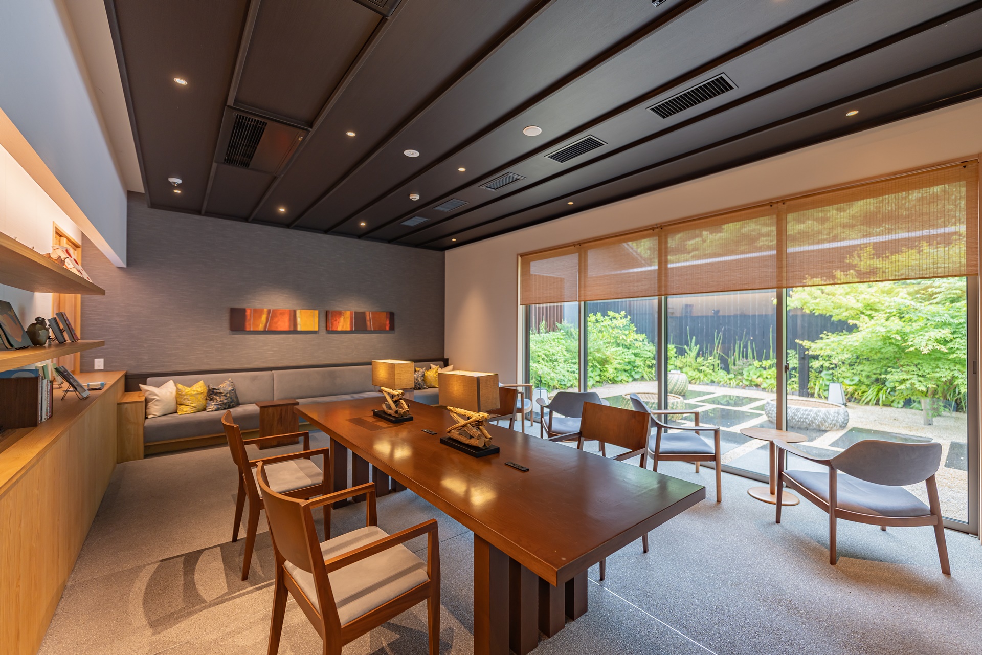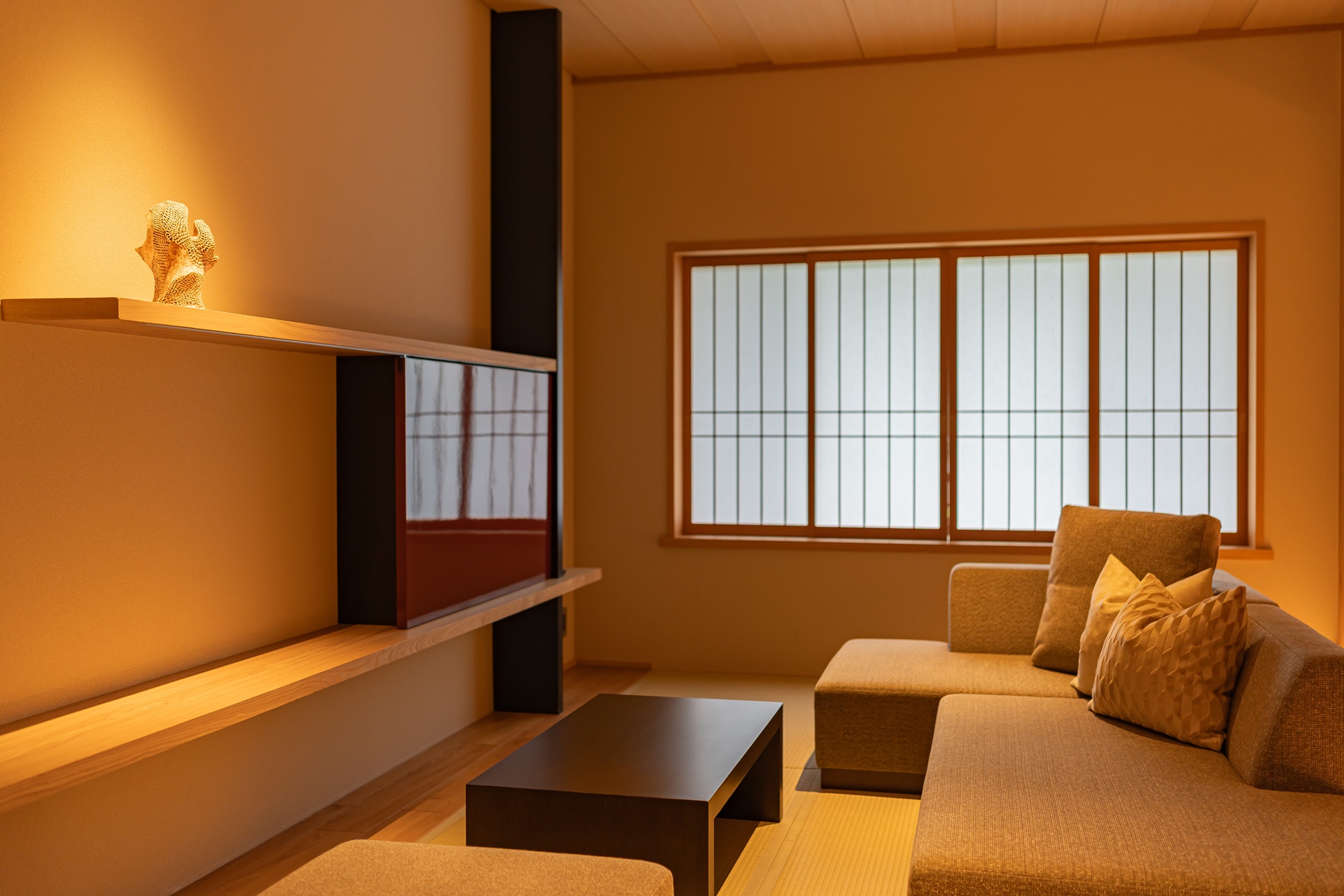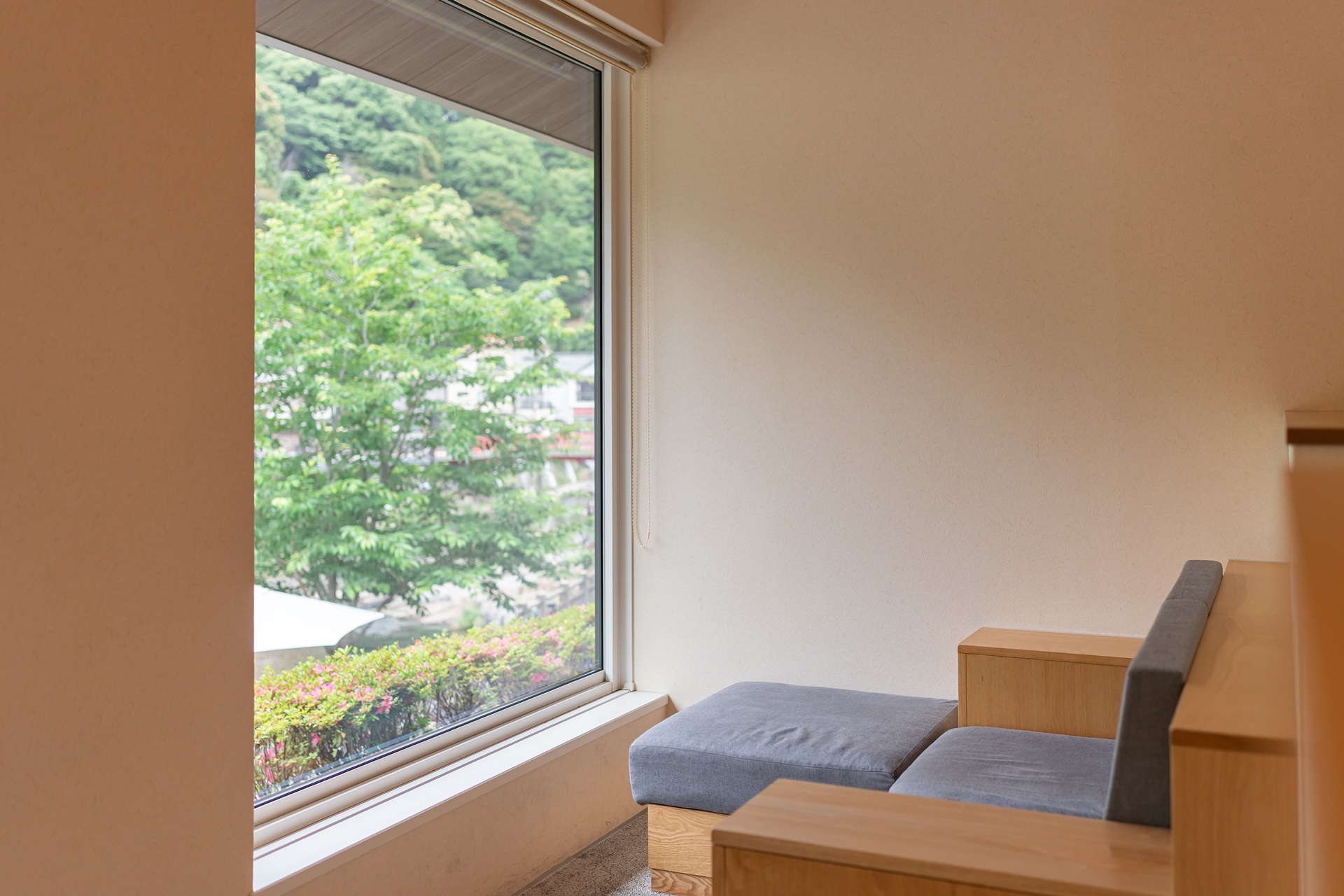 객실 문을 열면 따뜻한 나무 향과 함께 탁 트인 창으로 오토즈레 강의 풍경이 들어옵니다. 방 안은 다다미 바닥과 현대적인 가구가 절묘하게 조화를 이루며, 테이블 위에는 이 지역을 대표하는 하기야키 도자기와 오우치누리 칠기가 놓여 있어 머무는 순간부터 나가토의 전통과 만나는 듯합니다. 객실은 총 40실로 규모는 크지 않지만, 오히려 아늑함과 정갈함이 살아 있어 머무는 즐거움 자체를 배려한 듯합니다.