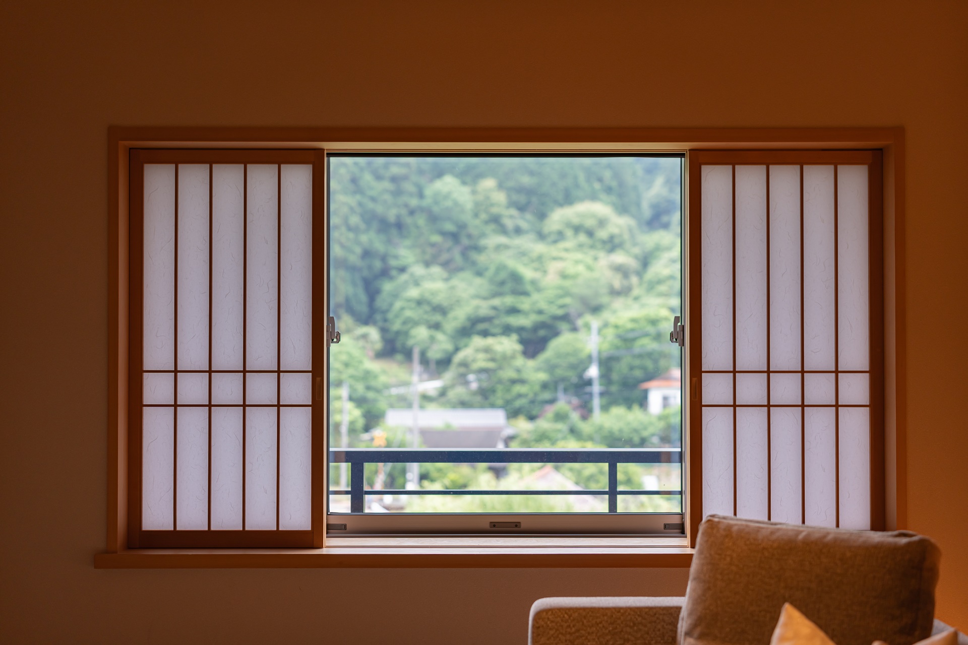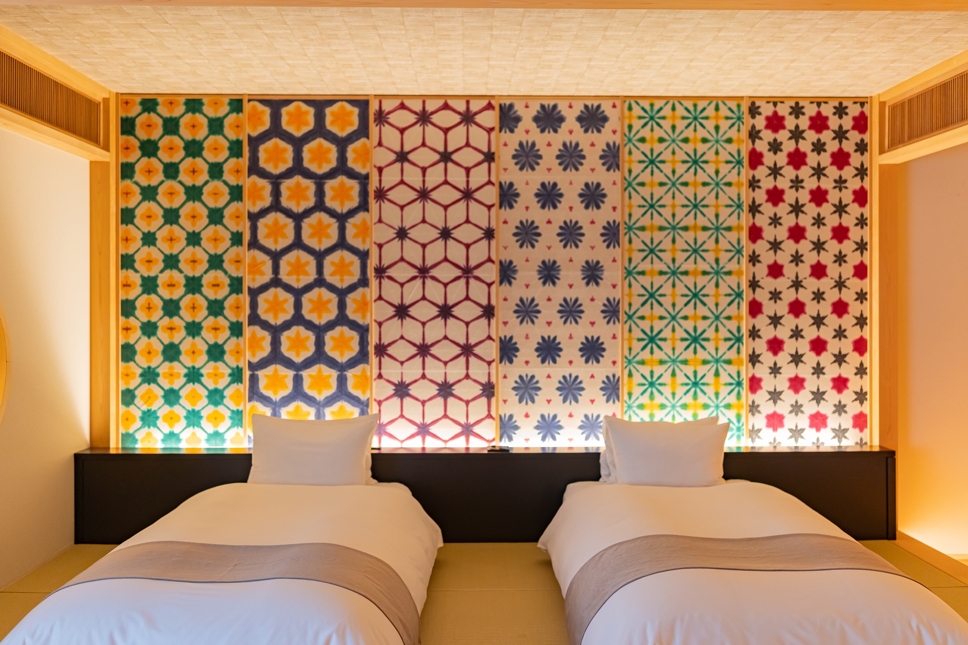 일본의 한지인 도쿠지 일본 종이로 장식된 침실