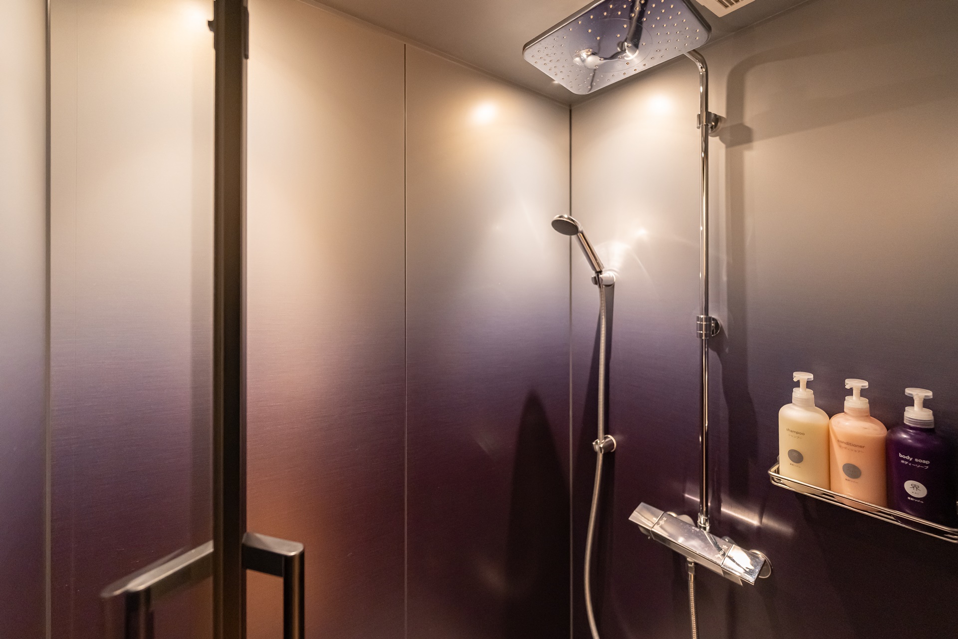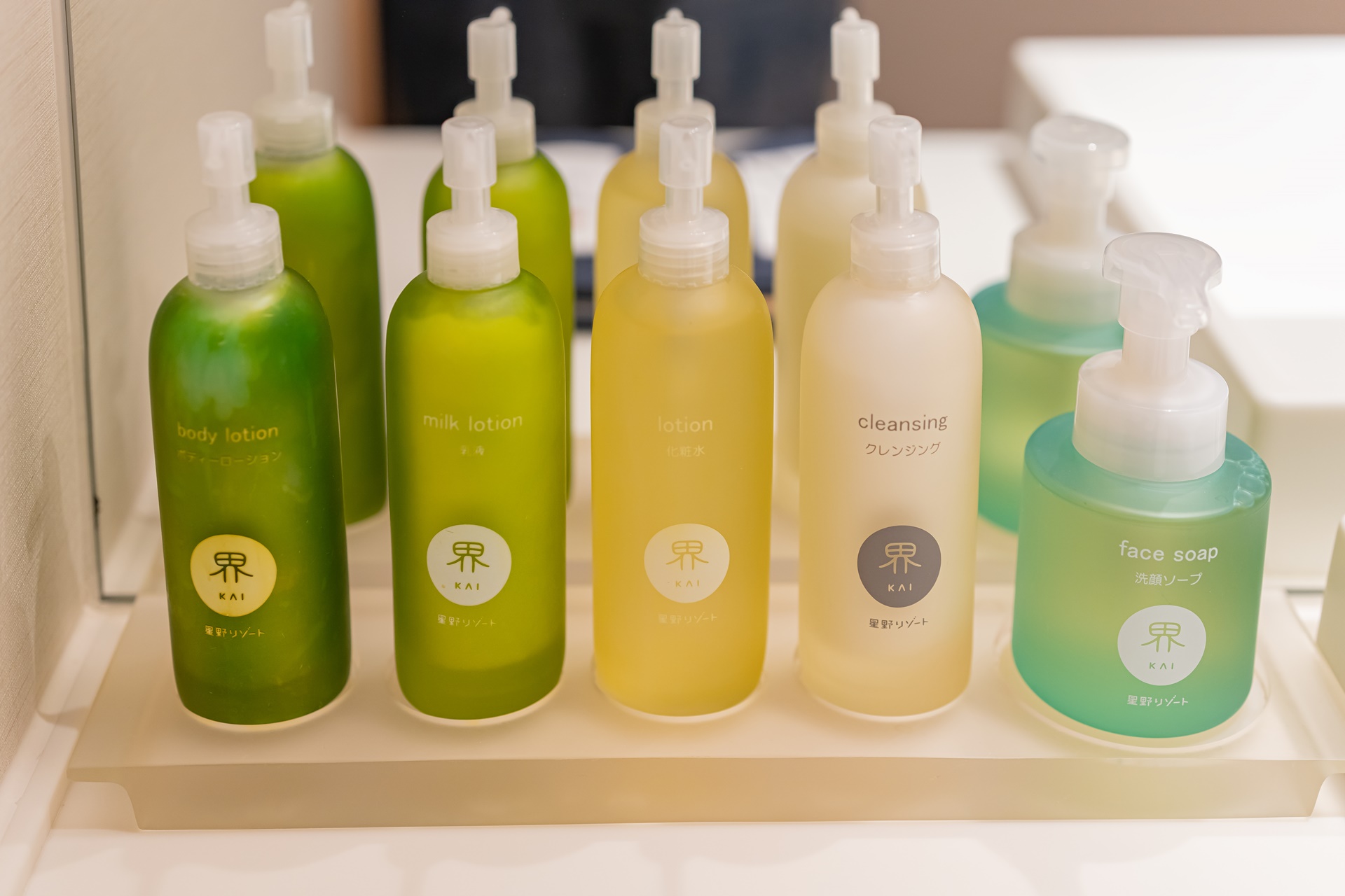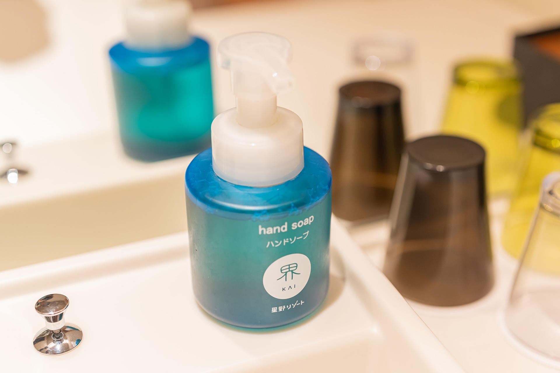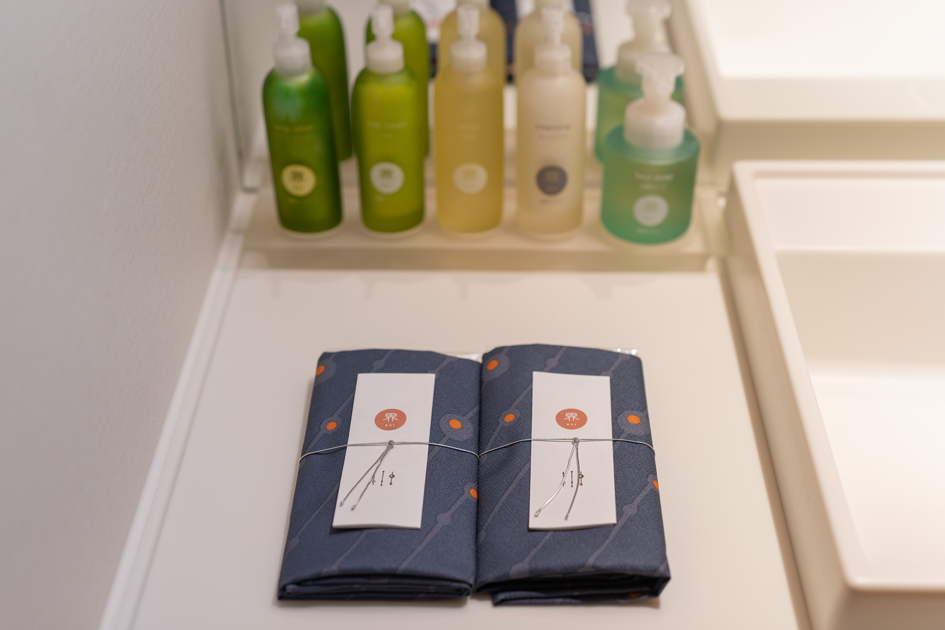 세면대, 샤워실과 호시노 리조트 카이 오리지널 브랜드인 어메니티들