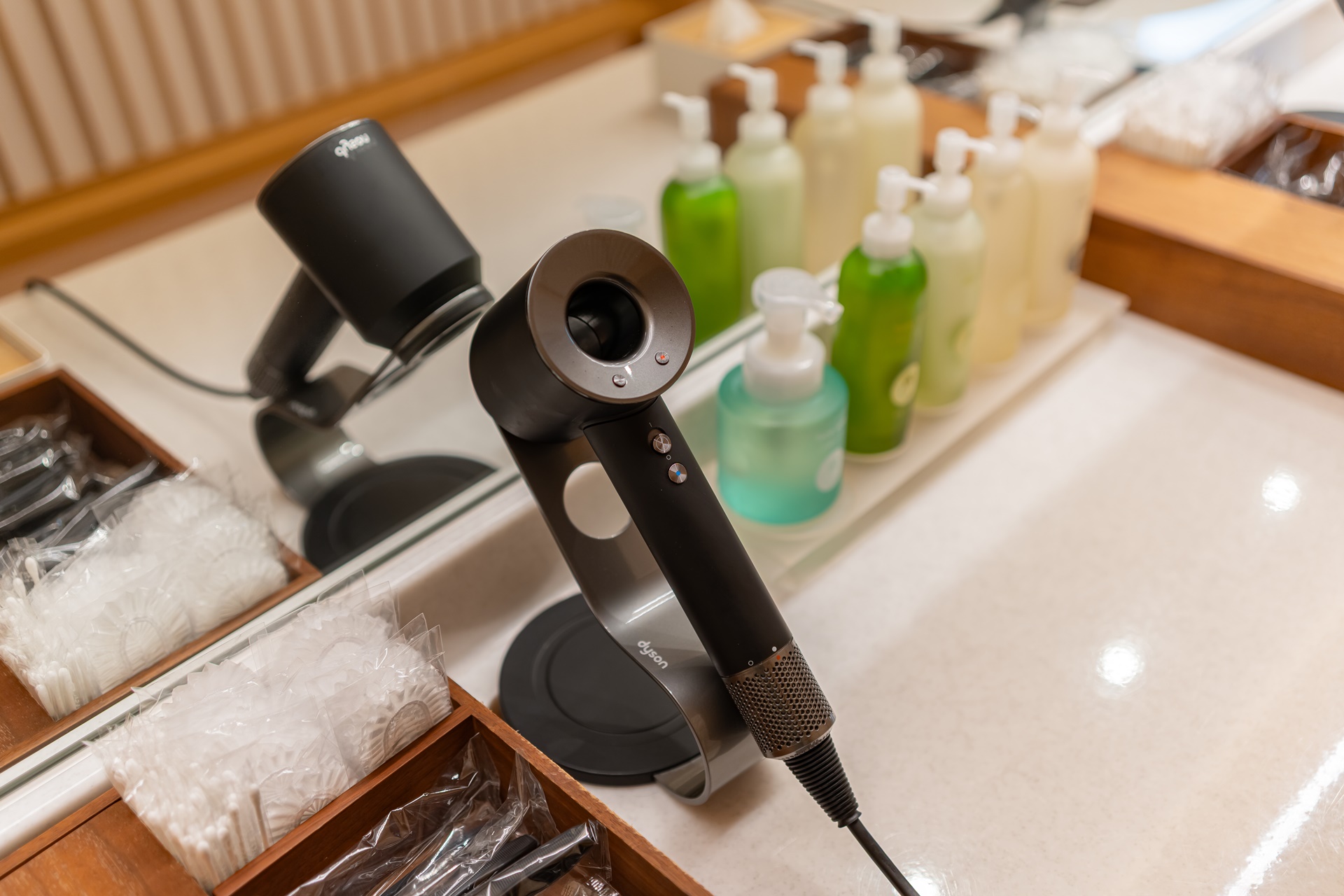 욕실도 깔끔하며 헤어드라이기로 다이슨 제품을 사용 하고 있었습니다.