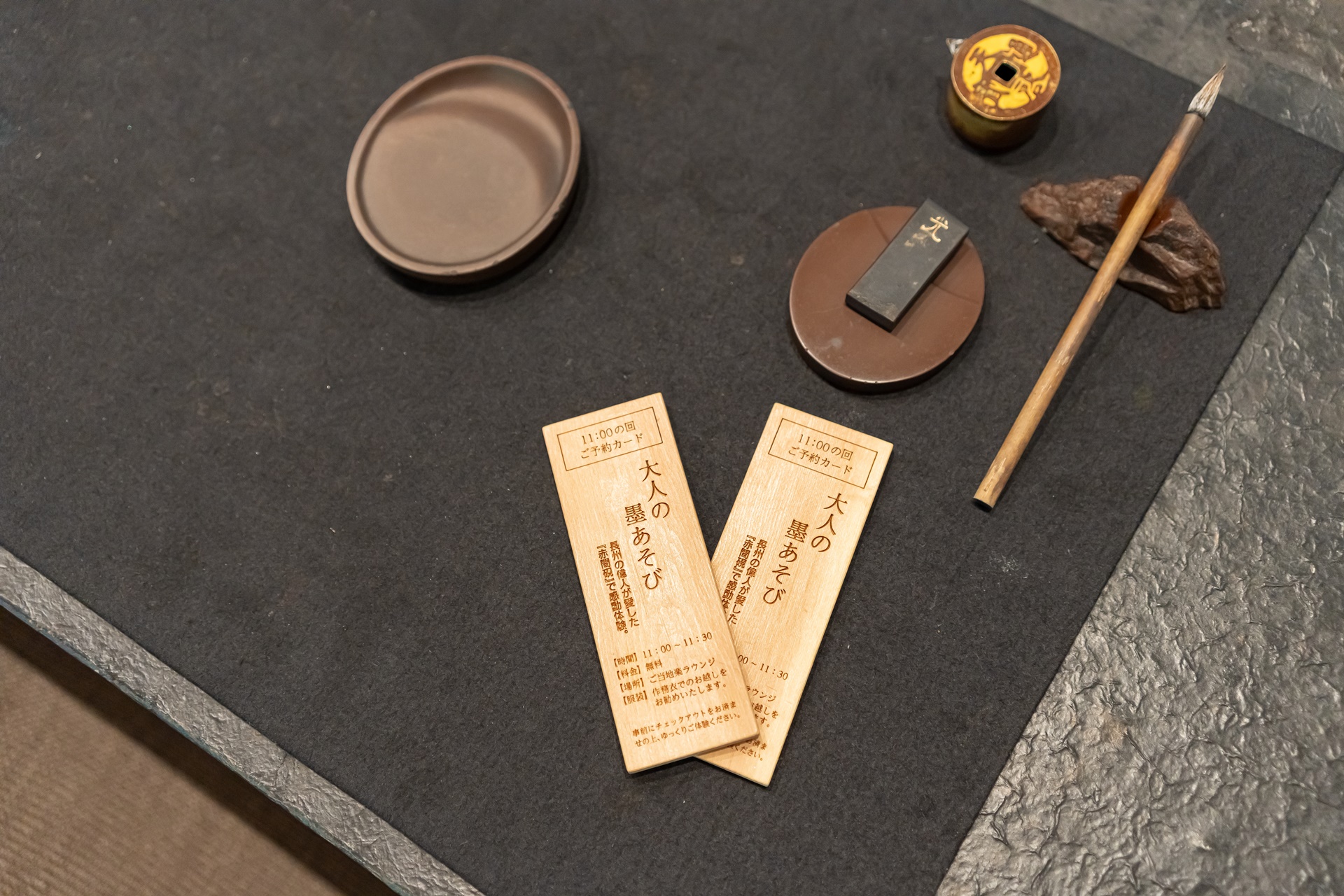 호시노 리조트 카이 나가토가 있는 나가토 지역은 일본의 벼루 생산지로 유명합니다. 이로 인해 이곳에서는 야마구치현의 전통 벼루인 아카마 벼루를 사용하여 부채에 붓글씨를 써 보는 체험을 할 수 있으며 완성된 부채는 기넘으로 가져갈 수 있습니다.