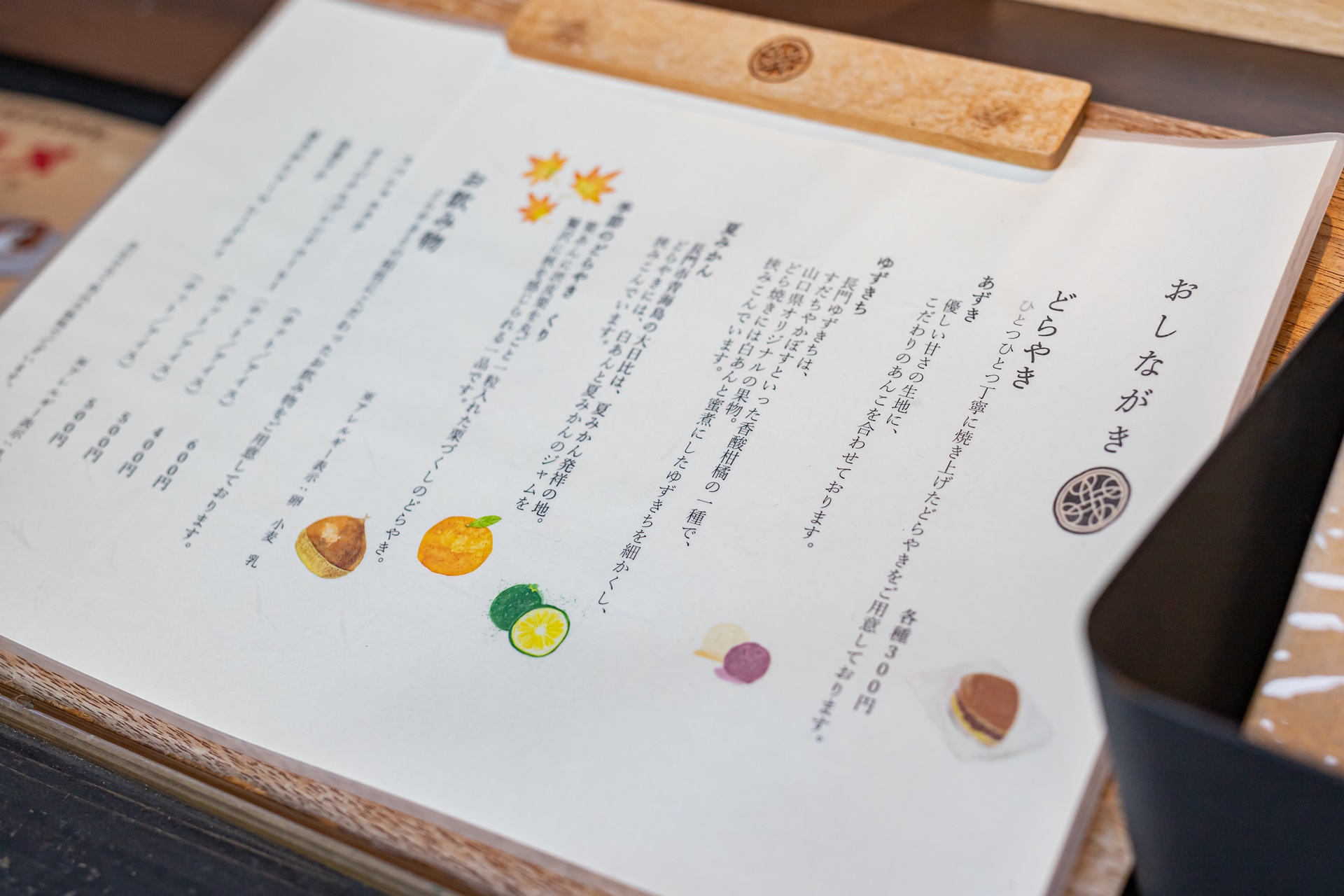 도라야키는 팥, 유자, 여름밀감, 밤등 다양한 맛이 있으며 이쁘게 포장을 해서 가져갈 수 있습니다.