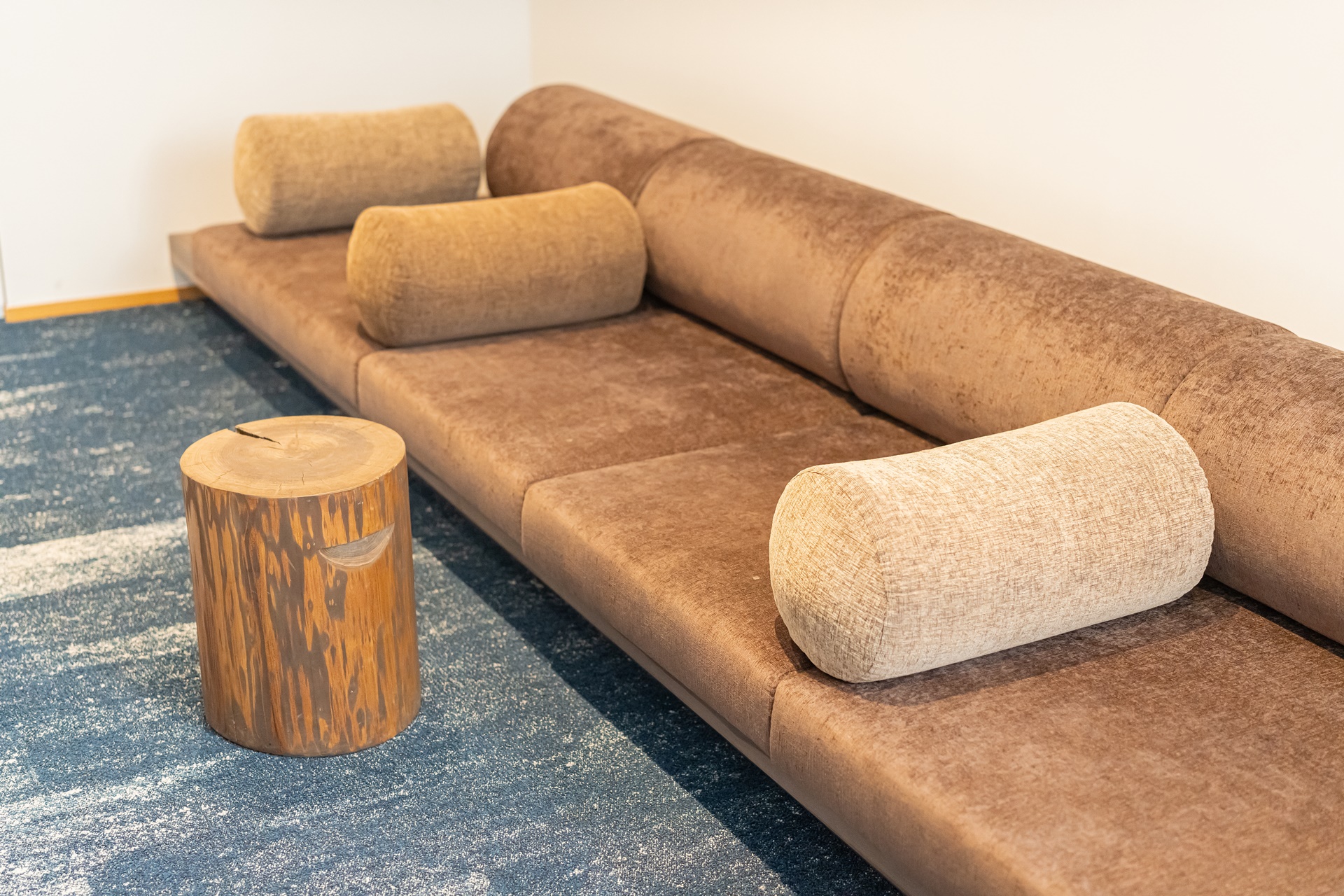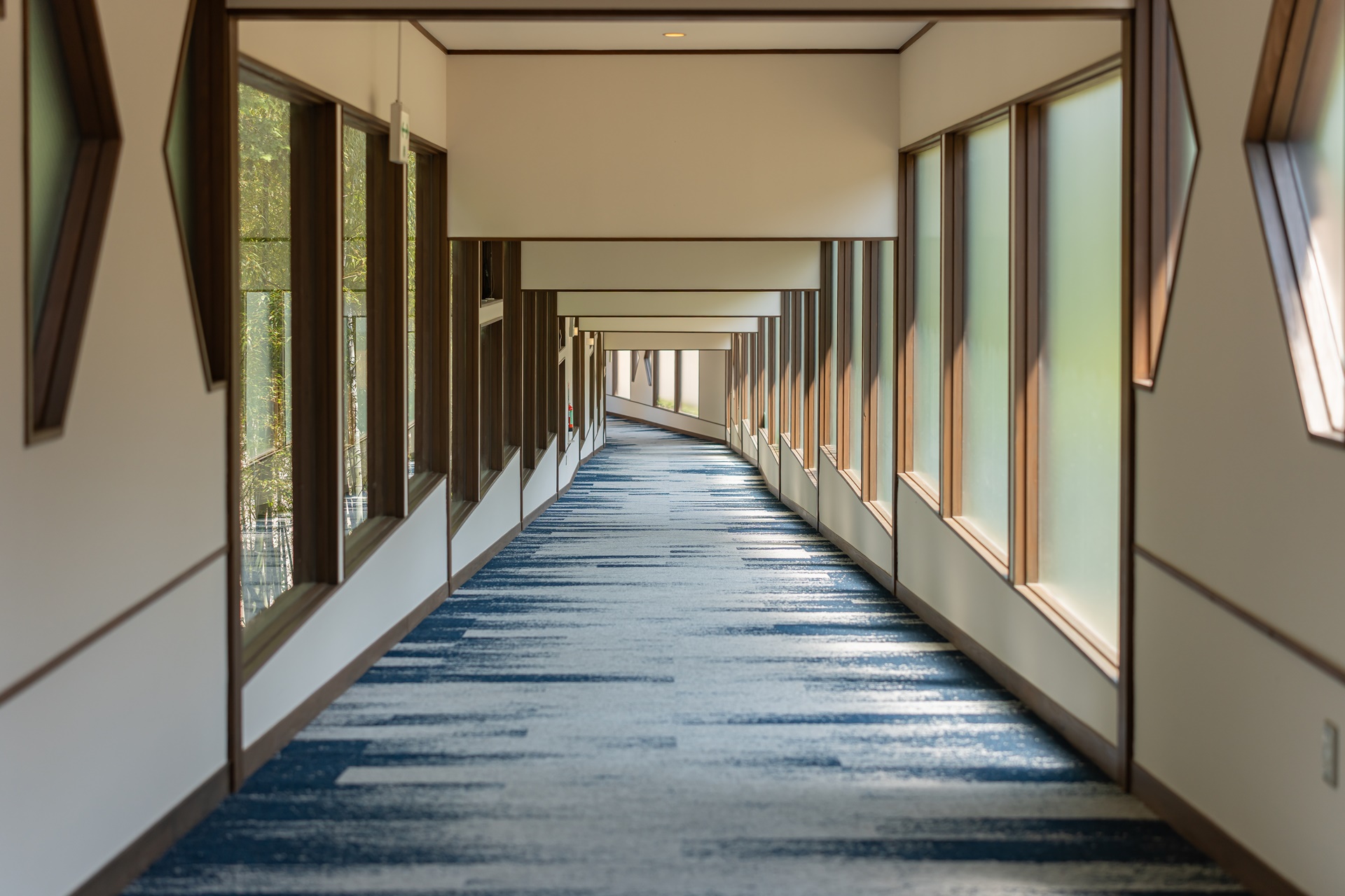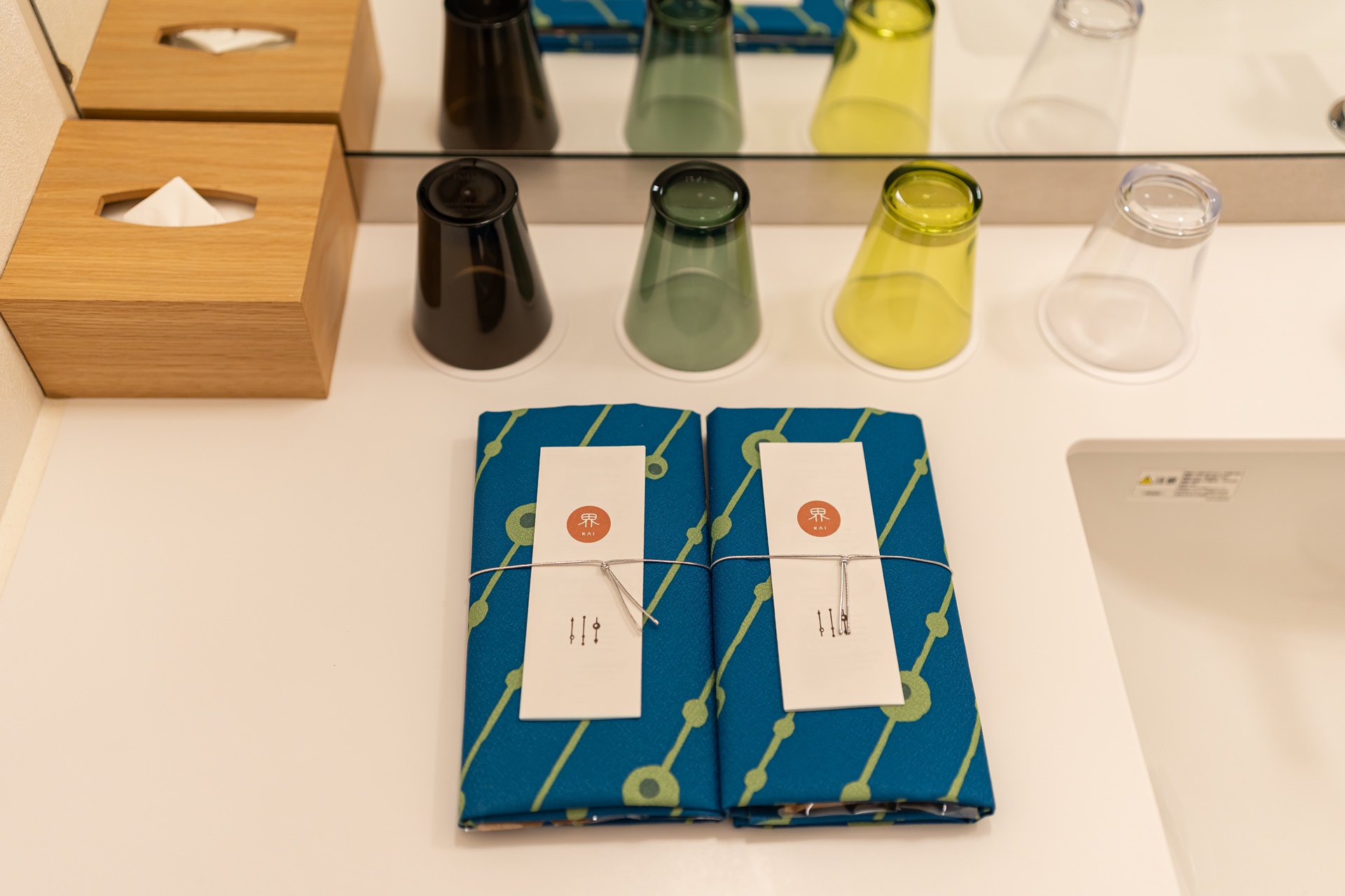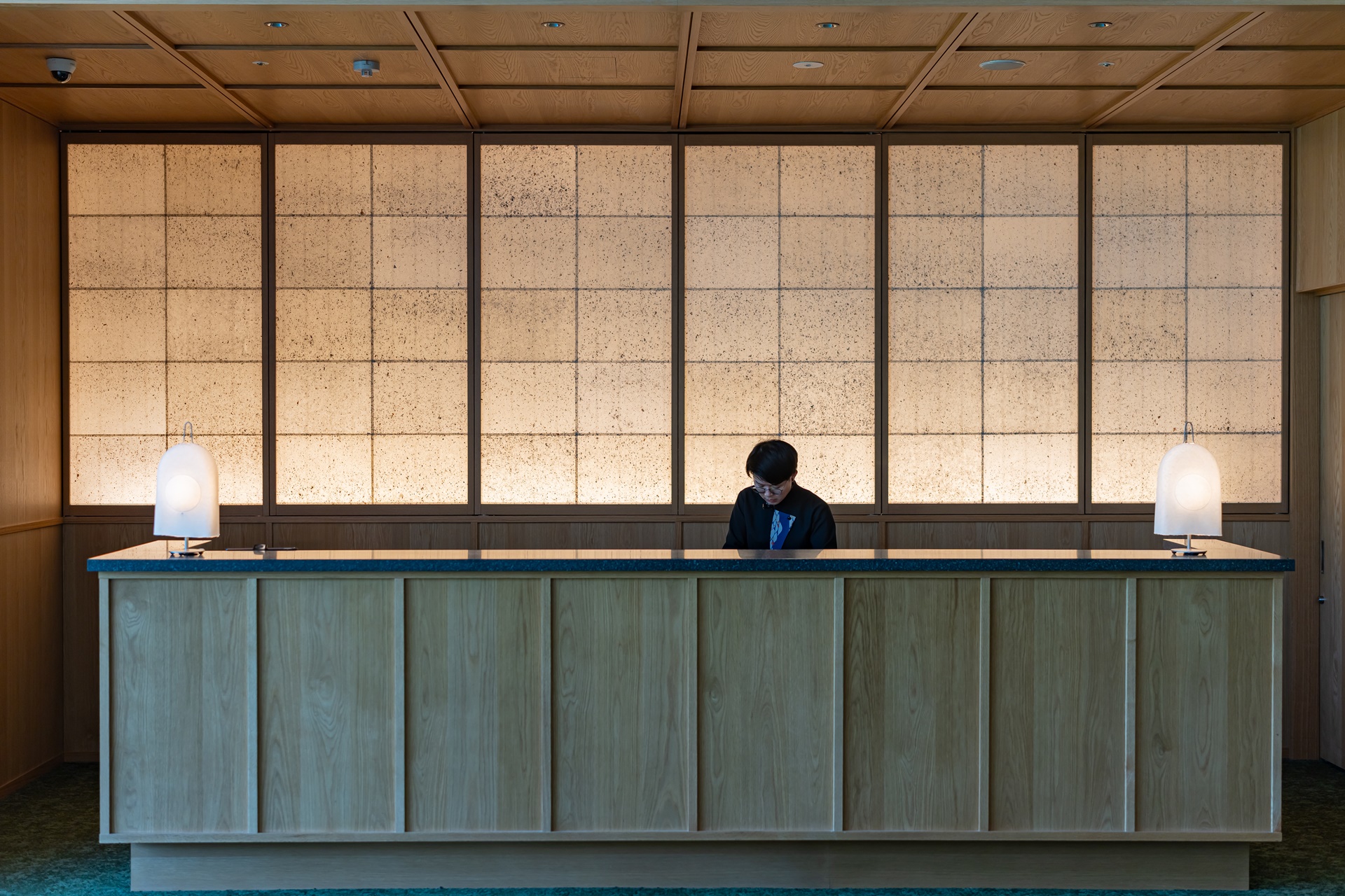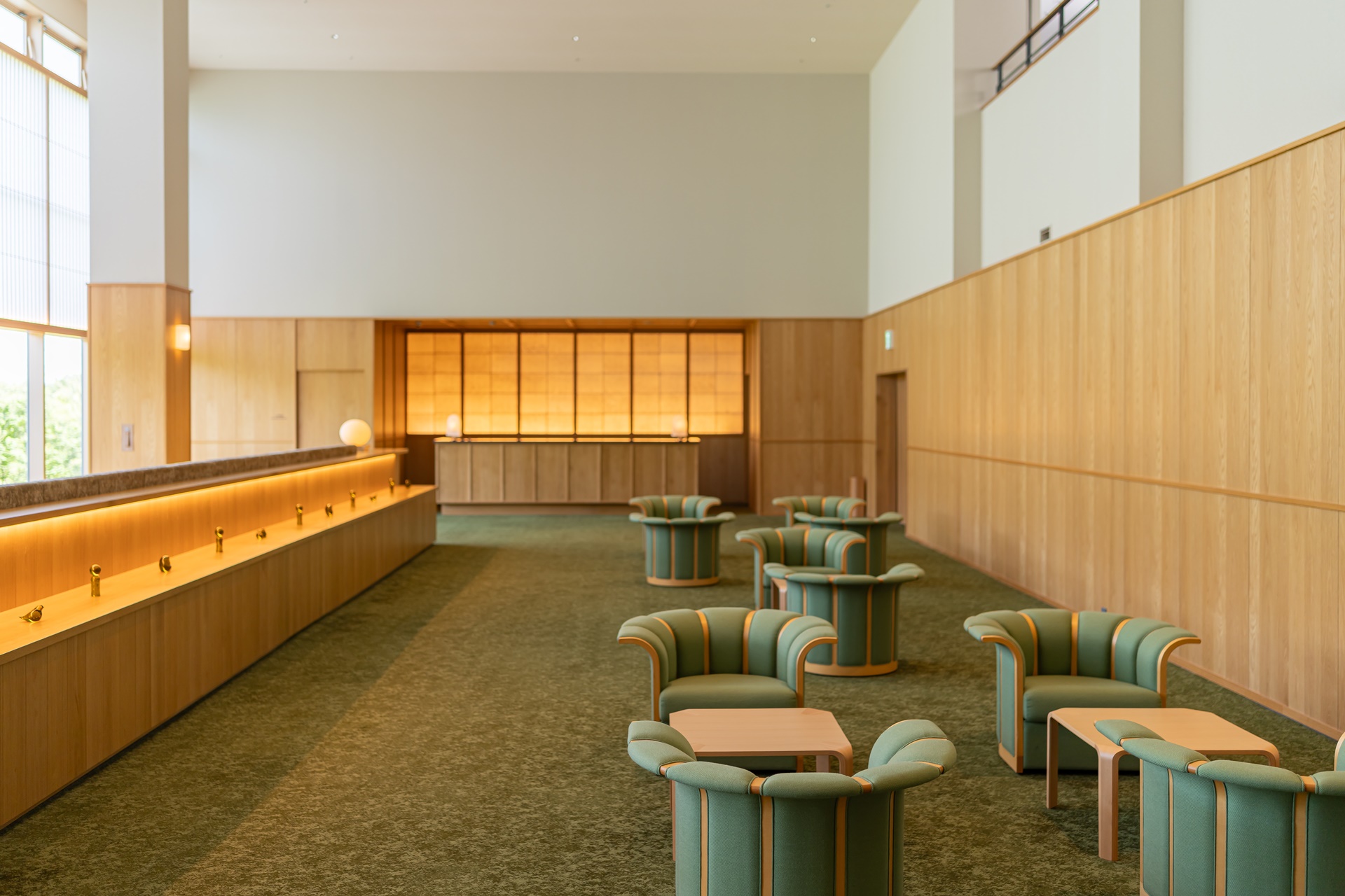호시노 리조트 카이 아키우 로비에 들어서는 순간 눈에 들어오는 것은 깊은 청록빛과 짙은 파랑입니다. 이 색은 단순히 인테리어용 컬러가 아니라, 아키우 계곡의 물빛, 햇빛을 받은 물의 청록색, 그늘진 바위 근처의 짙은 파란색을 실내 공간으로 해석한 것입니다.