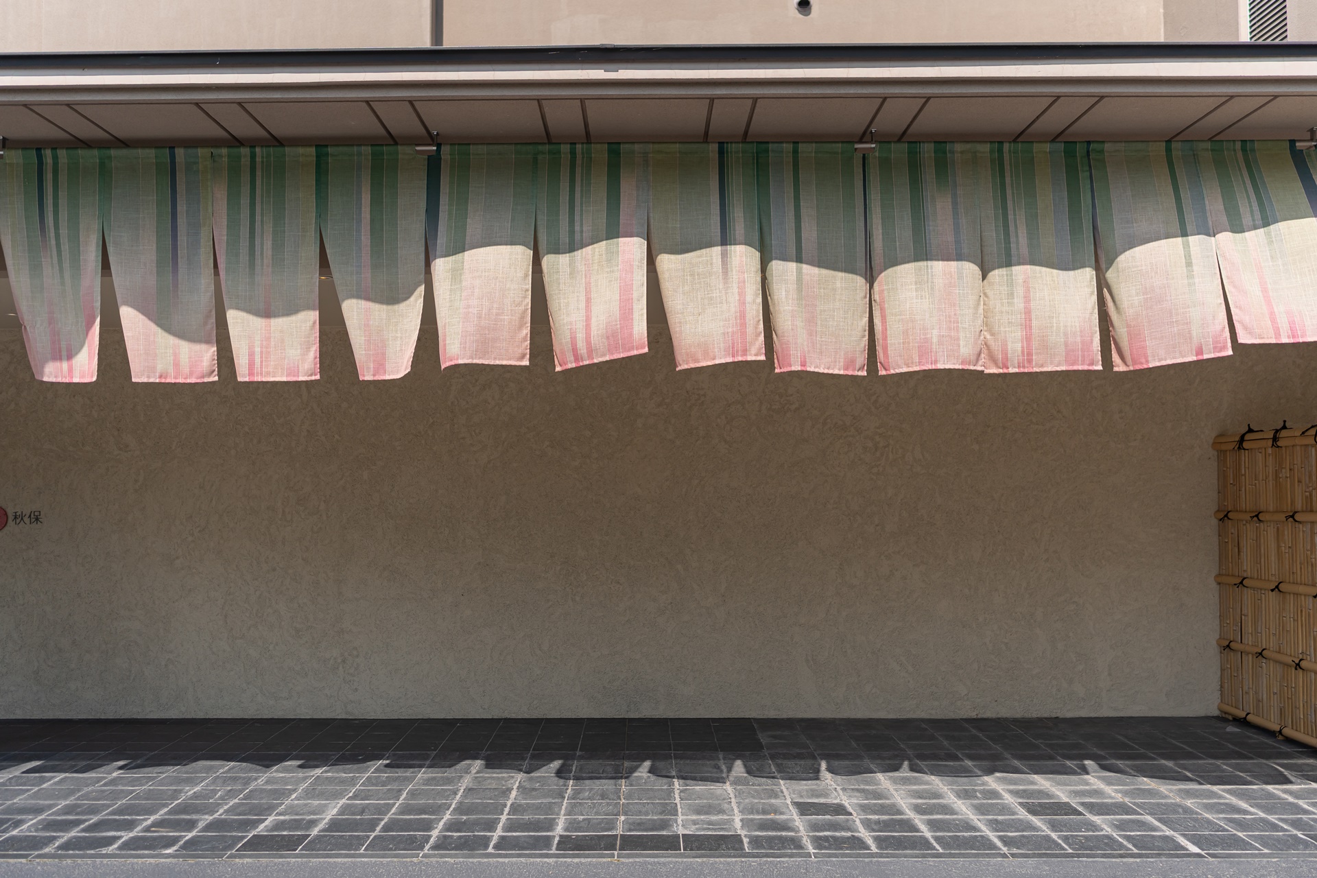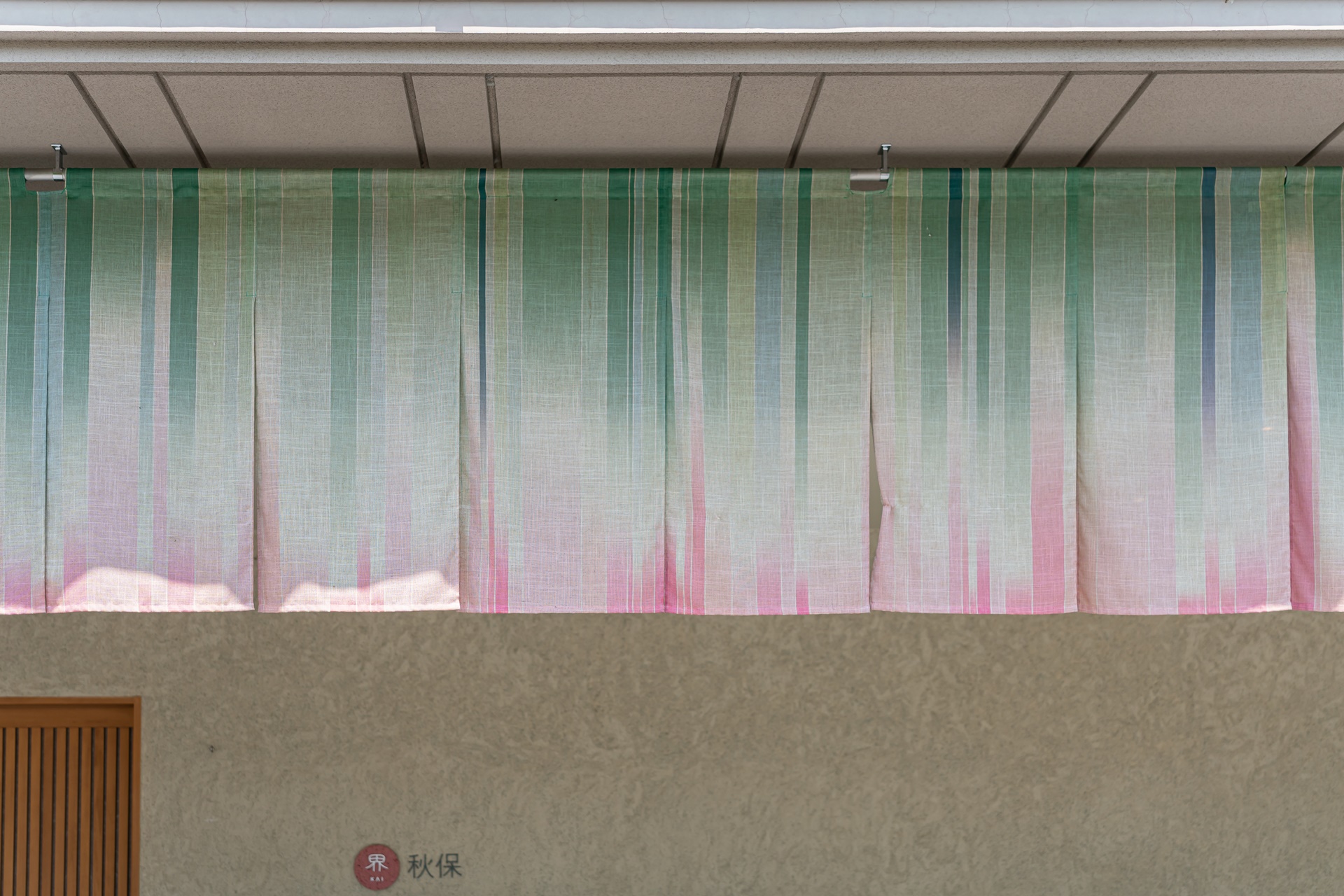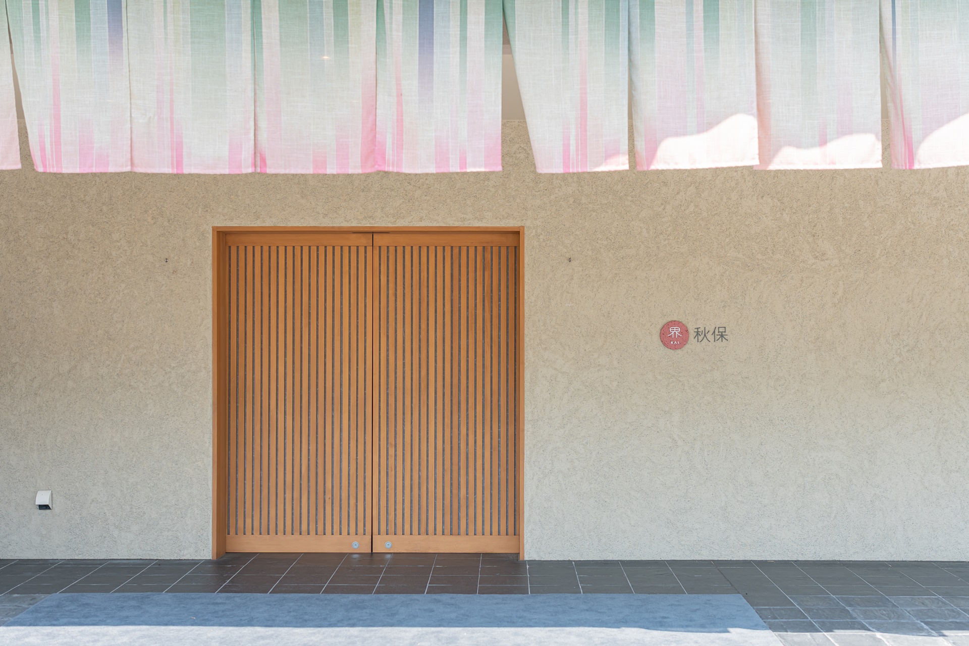 입구에 걸려 있는 노렌(천) 과 카이 아키우의 로고가 아기자기 합니다. 나무로 된 자동 문이 열리며 카이 아키우로 들어갑니다.