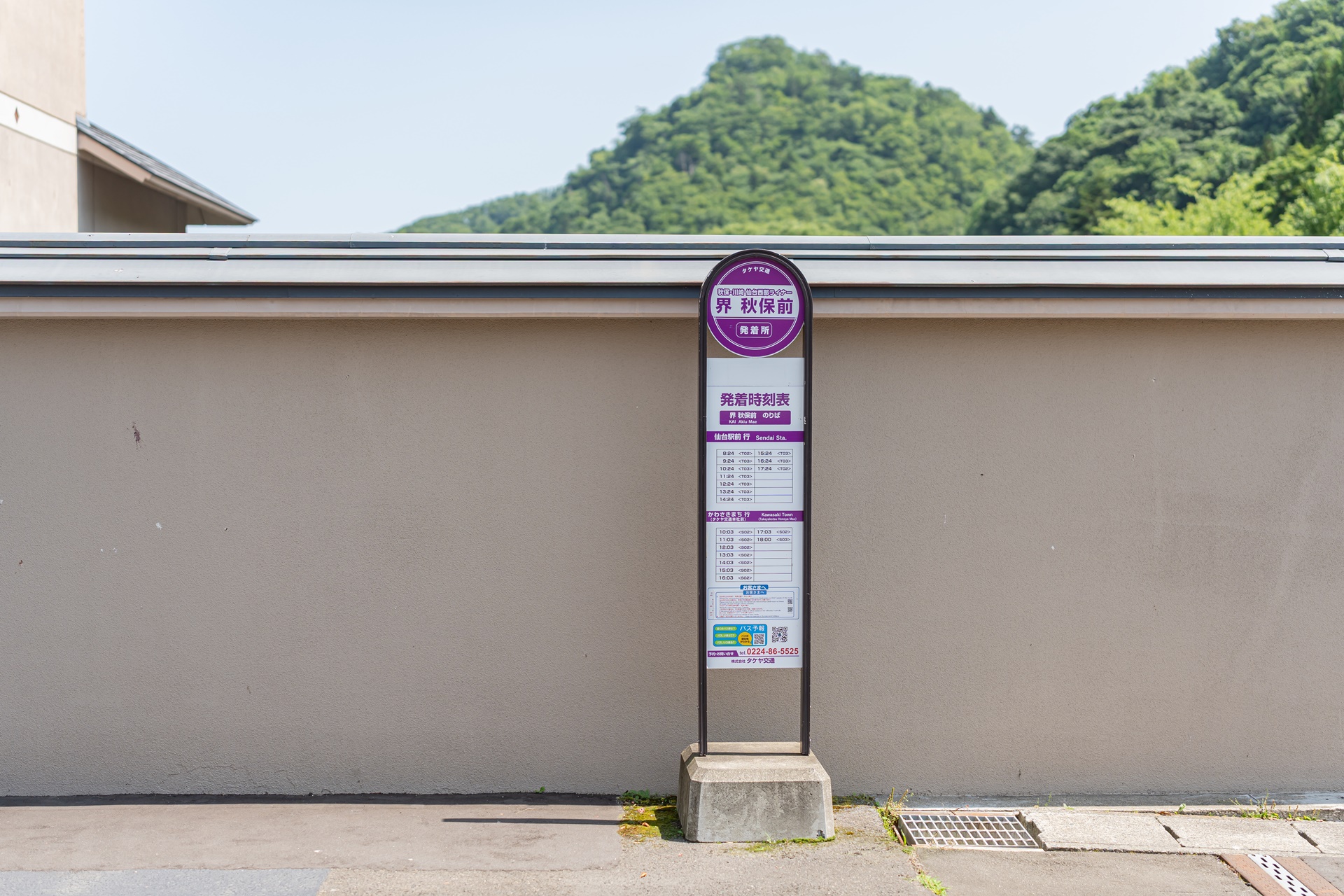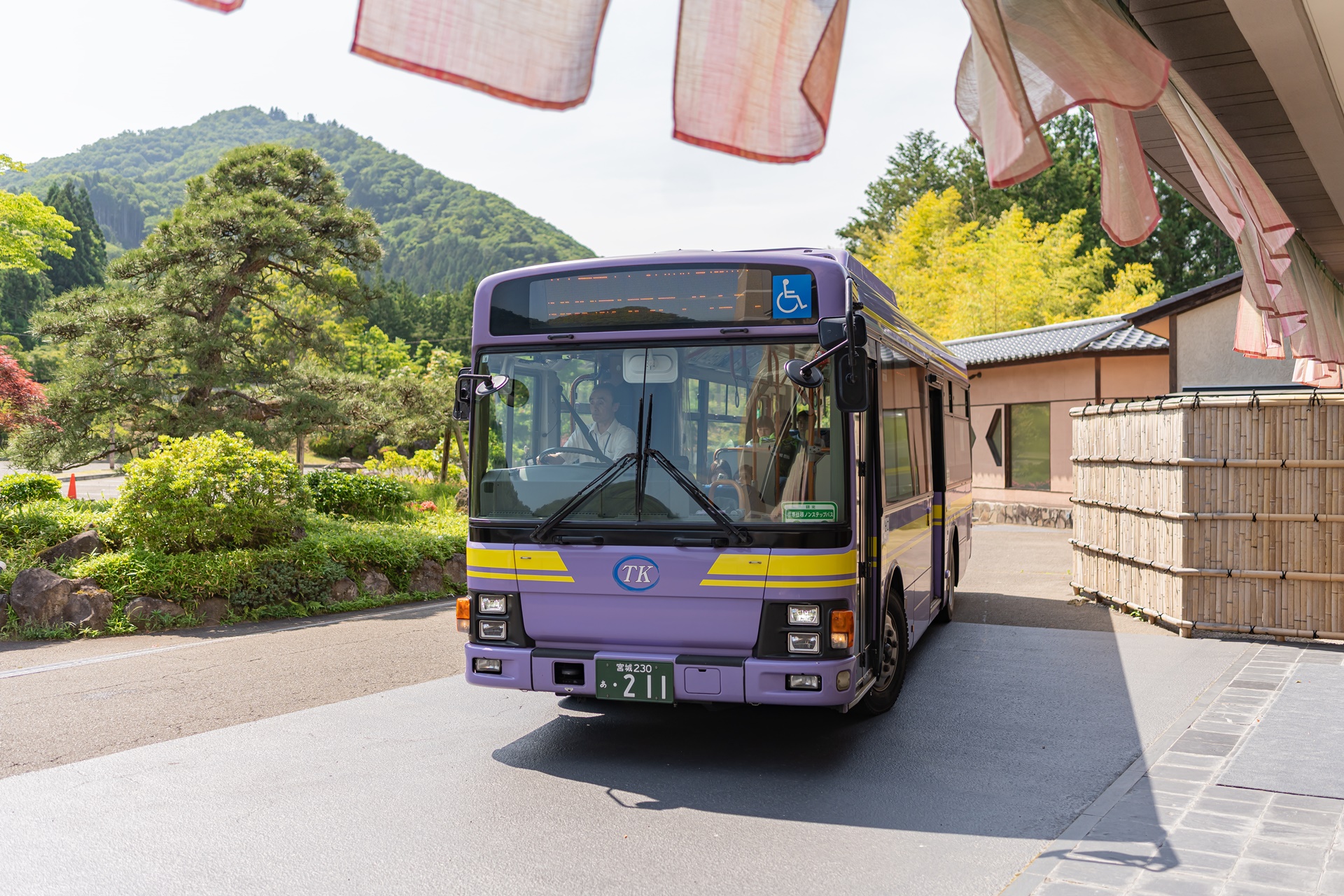 버스를 타고 도착한 호시노 리조트 카이 아키우, 료칸 부지 안에 버스 정거장이 있어 편하게 이용할 수 있으며 아키우 온천의 다른 관광 명소까지 이동에도 이를 이용하면 편합니다.