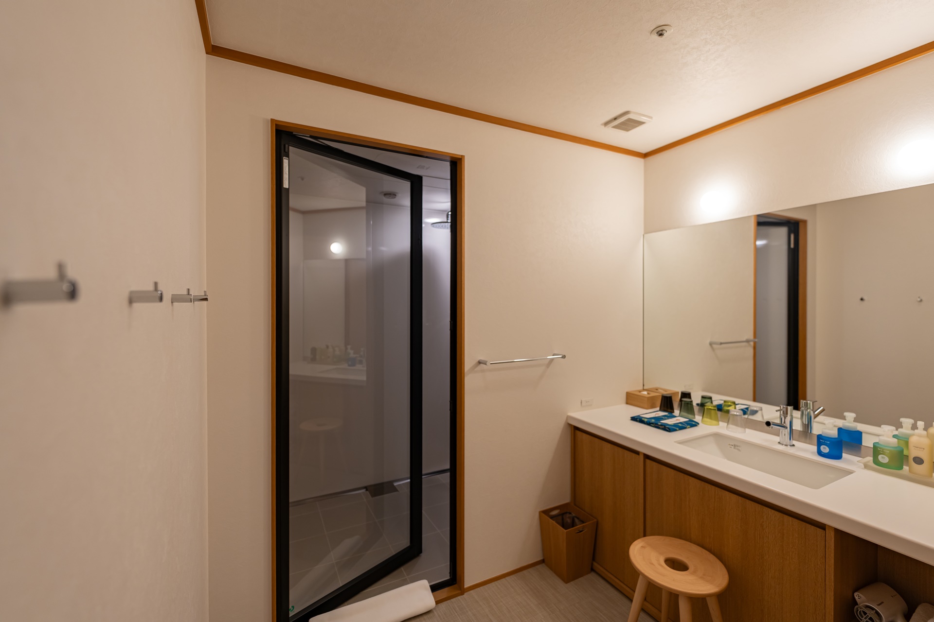 넓은 화장실과 세면대, 샤워실, 어메니티는 호시노 리조트 카이 브랜드로 향과 품질이 좋은 것 같습니다.