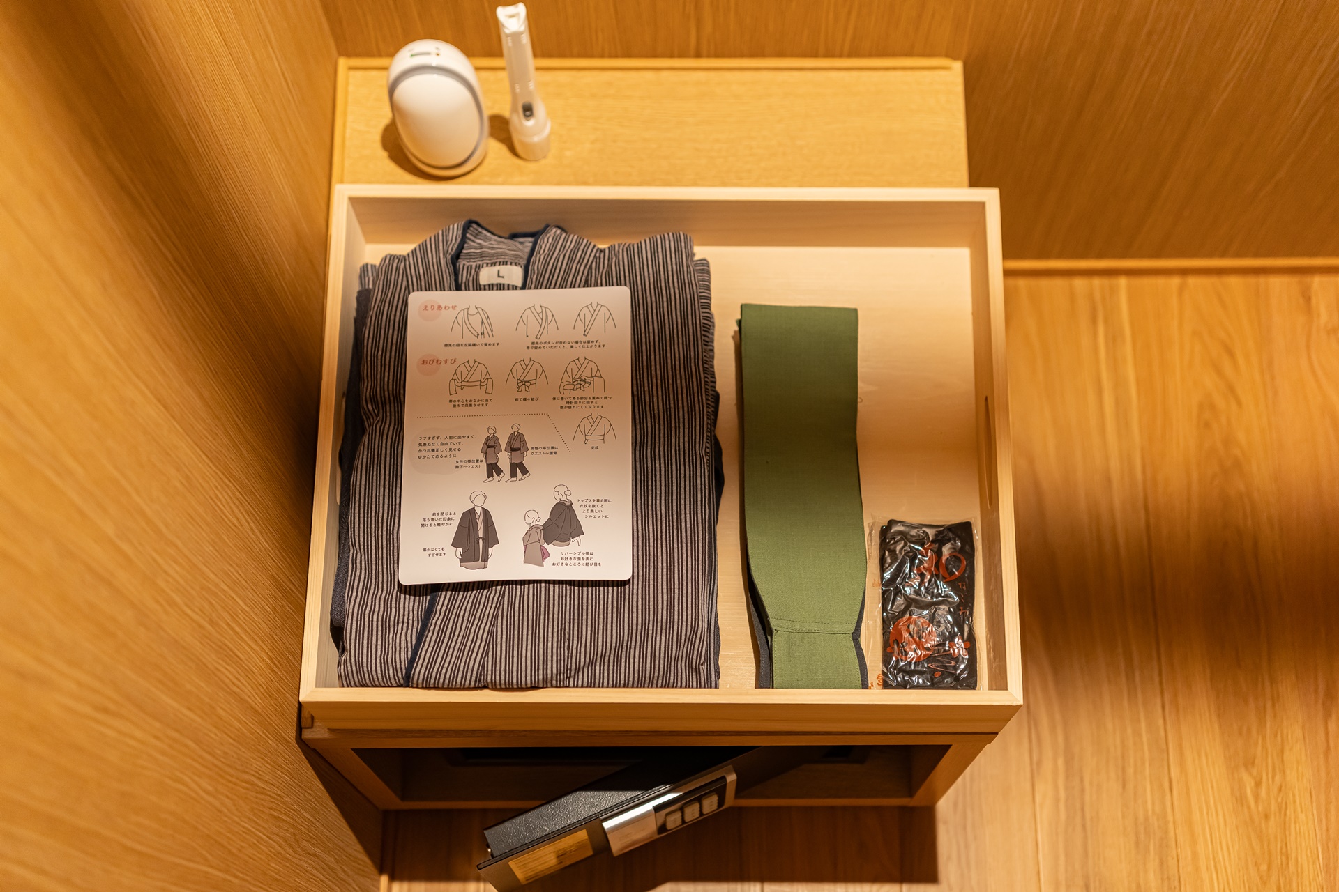 맞은편에는 넓은 옷장이 있고, 온천을 갈 때나 시설 안네서 입을 수 있는 옷이 있었습니다.