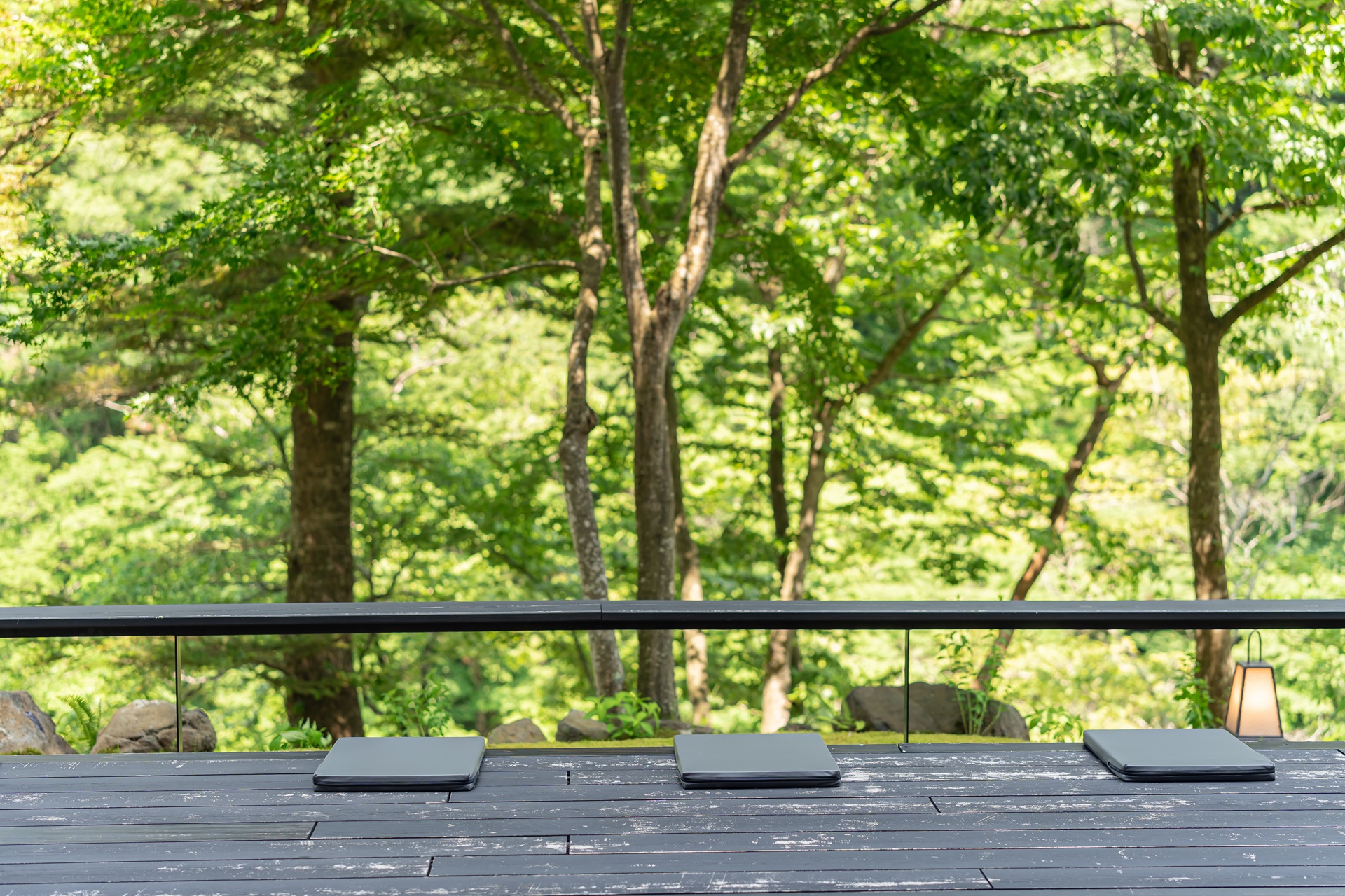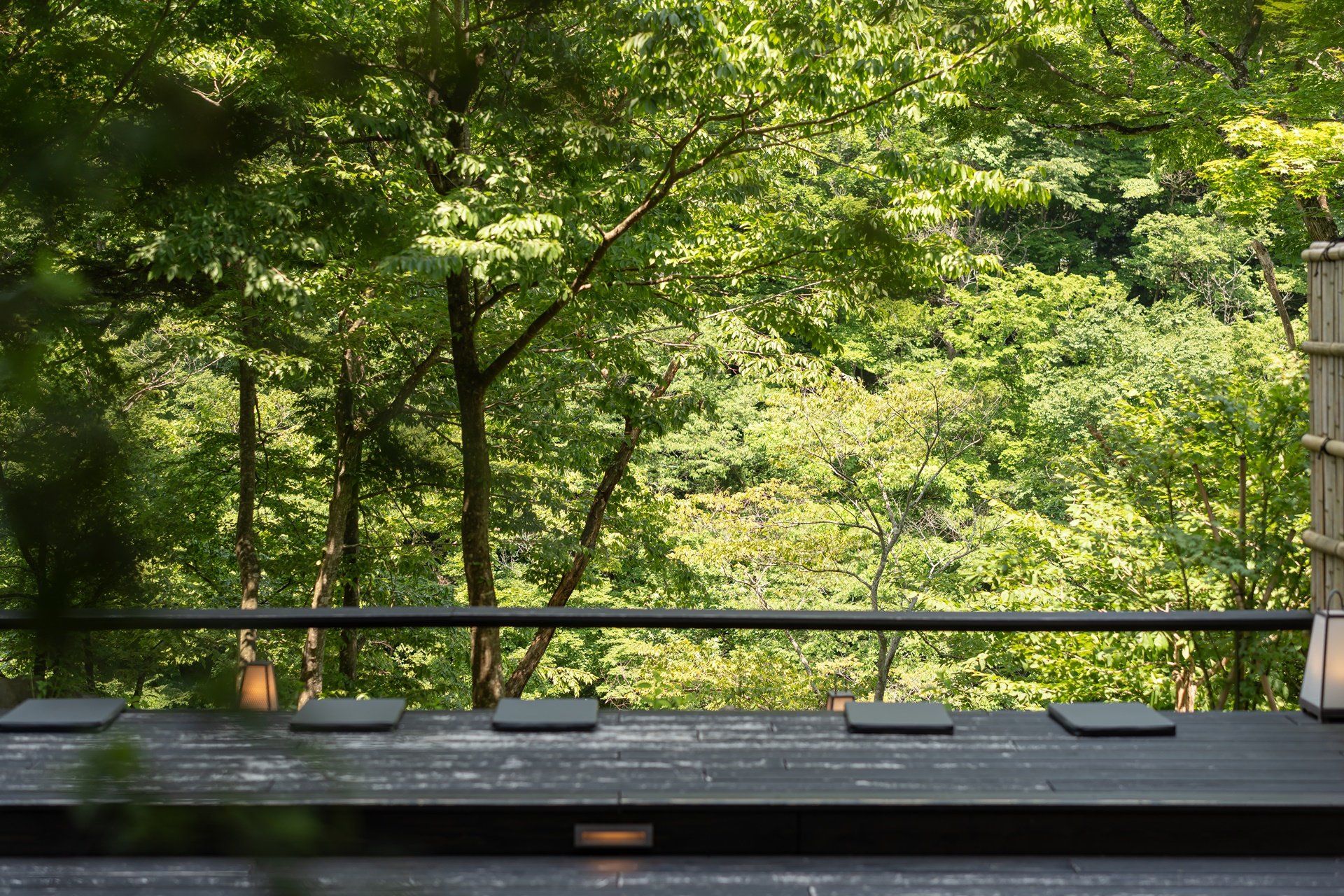 라운지 외부는 아키우 온천의 아름다운 풍경을 감상하며 시간을 보낼 수 있습니다.