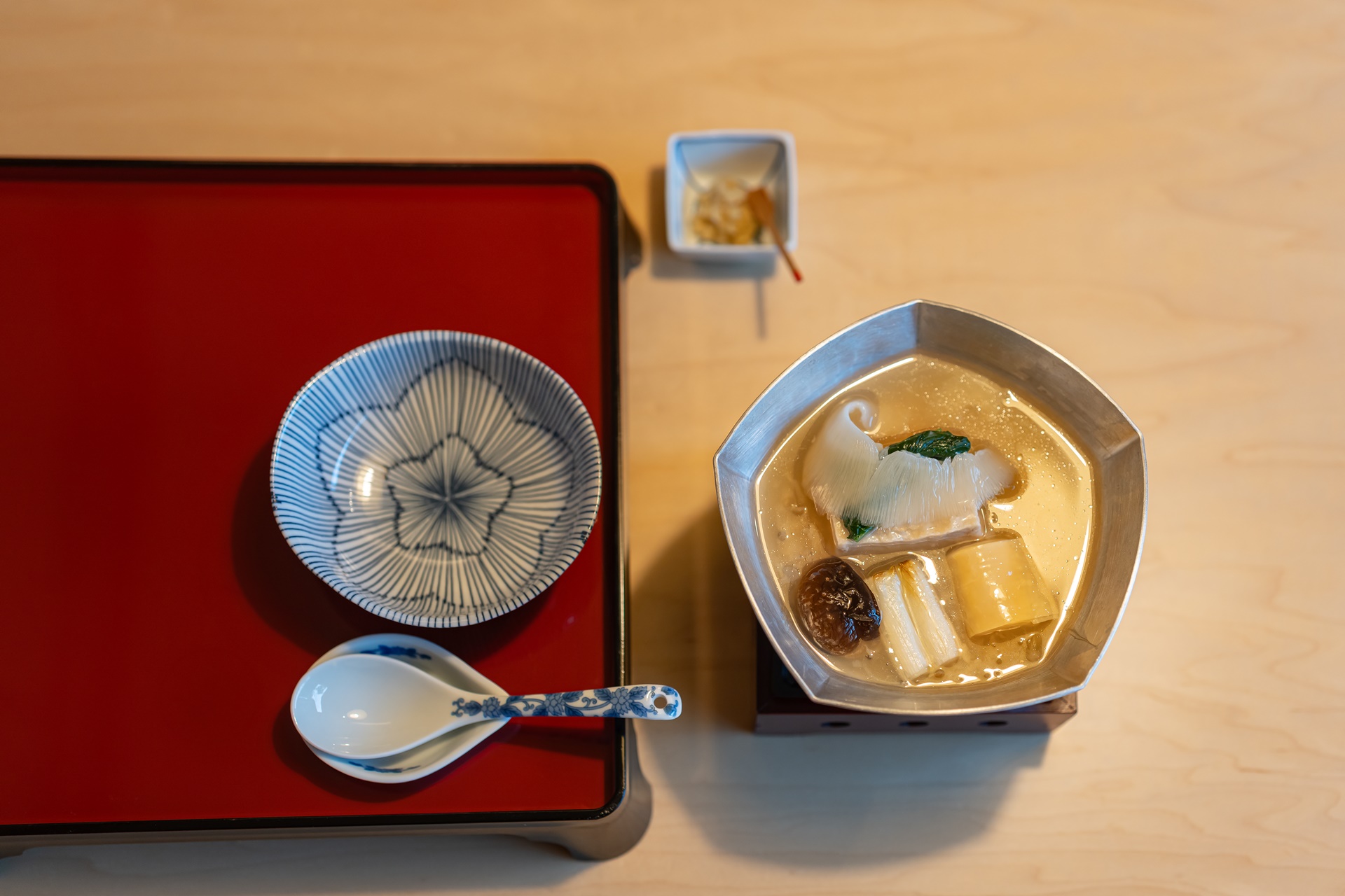 사진을 찍고 보니 뭔가 미니어쳐 같은 느낌이 듭니다. 센다이의 유명 된장 국과 이를 더 맛있게 해줄 양념과 토핑입니다.