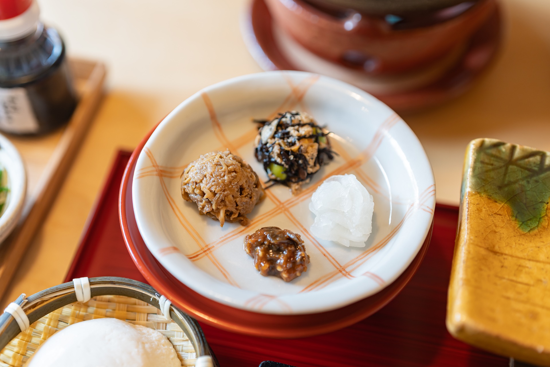 호시노 리조트 카이 아키우의 조식은 이렇게 이쁘게 한상 차려집니다.