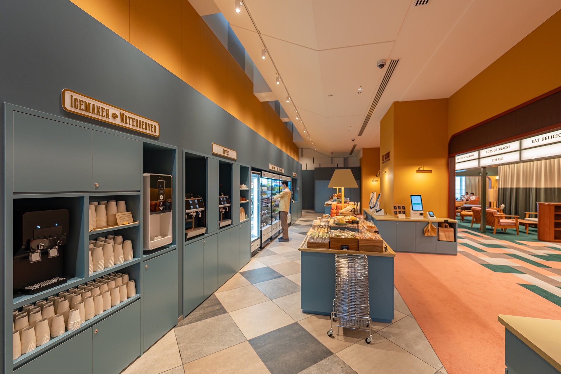1955 도쿄 베이 by 호시노 리조트에서의 저녁 시간은 24시간 이용 가능한 퍼블릭 스페이스인 2nd Room (세컨드 룸)이 있기 때문에 원하는 공간에서 여유롭게 시간을 보낼 수 있습니다. 1층은 편의점 2nd Room (세컨드 룸) 에는 무인 매점인 Food & Drink Station이 있어 출출하면 언제든지 음료와 간식을 구매할 수 있습니다.