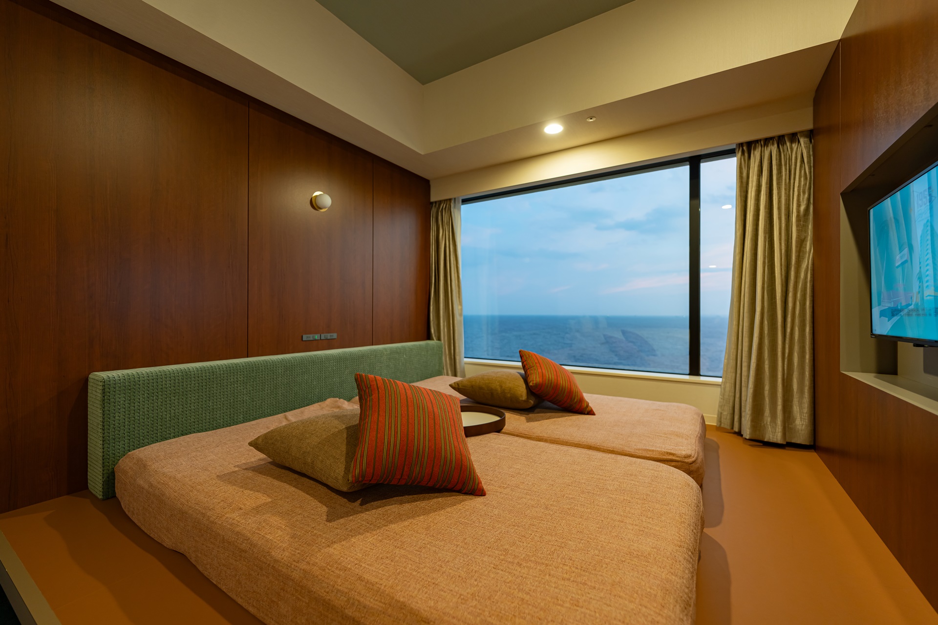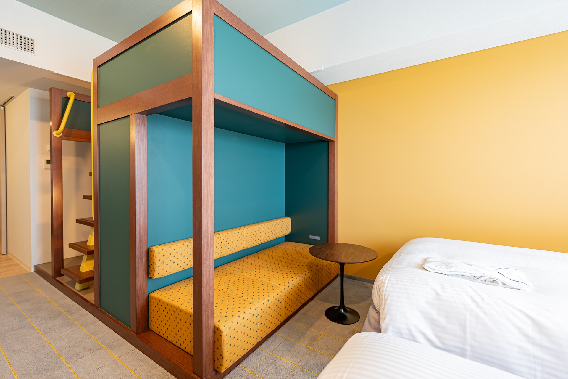2nd Room (세컨드 룸)은 1955 도쿄베이 by 호시노 리조트 호텔의 가장 큰 차별점인 24시간 이용 가능한 퍼블릭 스페이스입니다.체크인 전이나 체크아웃 후에도 자유롭게 머무를 수 있는 공간으로 이른 아침 도착해서 준비하거나, 밤늦게 파크에서 돌아와 짐을 정리하고 쉴 수 있습니다. 신발을 벗고 쉴 수 있는 공간, 커튼으로 가려지는 반 개방형 휴식 공간, 회의나 담소를 나눌 수 있는 테이블 공간 등으로 구성되어 있습니다.