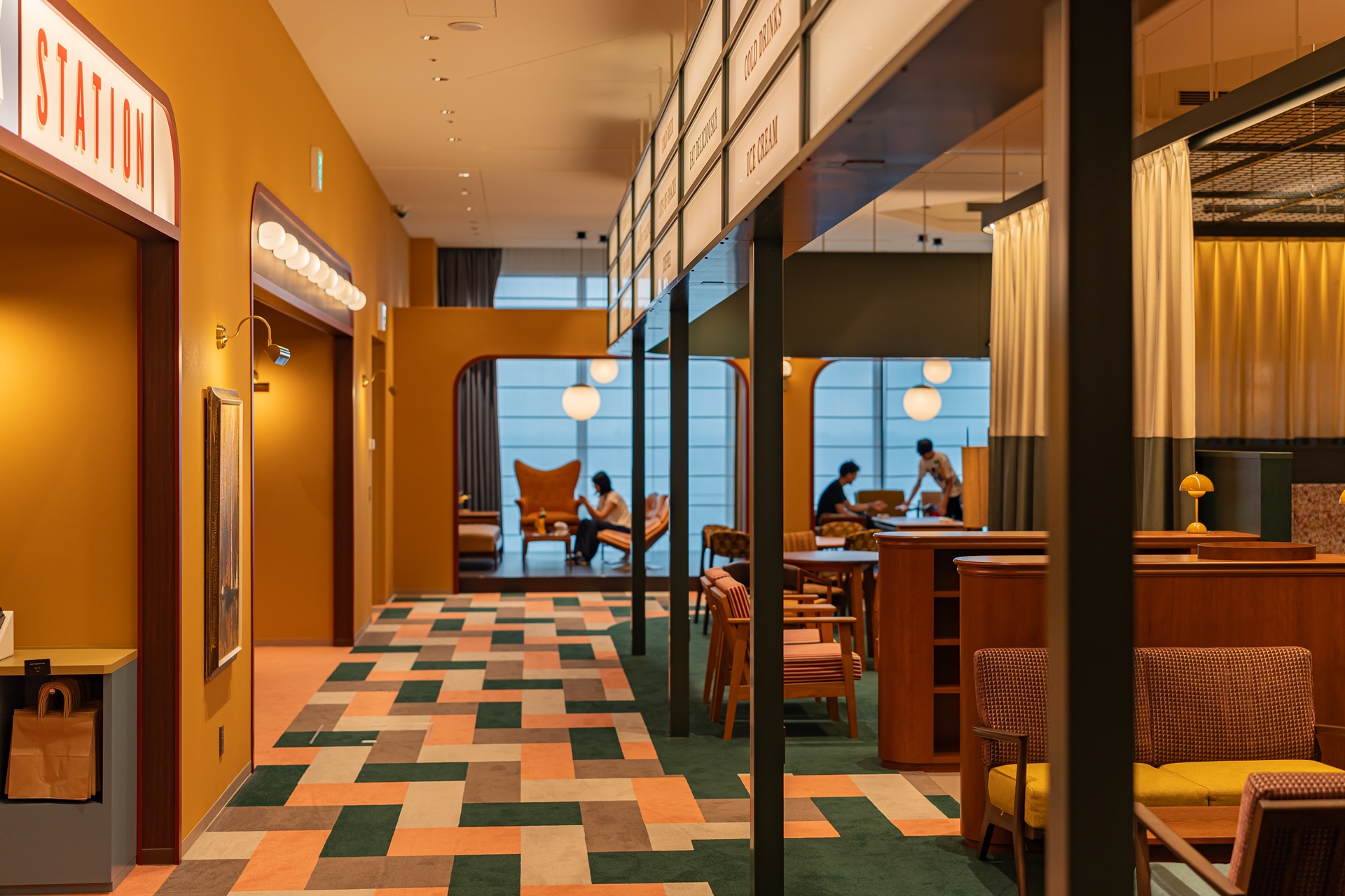 1955 도쿄 베이 by 호시노 리조트에서의 저녁 시간은 24시간 이용 가능한 퍼블릭 스페이스인 2nd Room (세컨드 룸)이 있기 때문에 원하는 공간에서 여유롭게 시간을 보낼 수 있습니다. 1층은 편의점 2nd Room (세컨드 룸) 에는 무인 매점인 Food & Drink Station이 있어 출출하면 언제든지 음료와 간식을 구매할 수 있습니다.