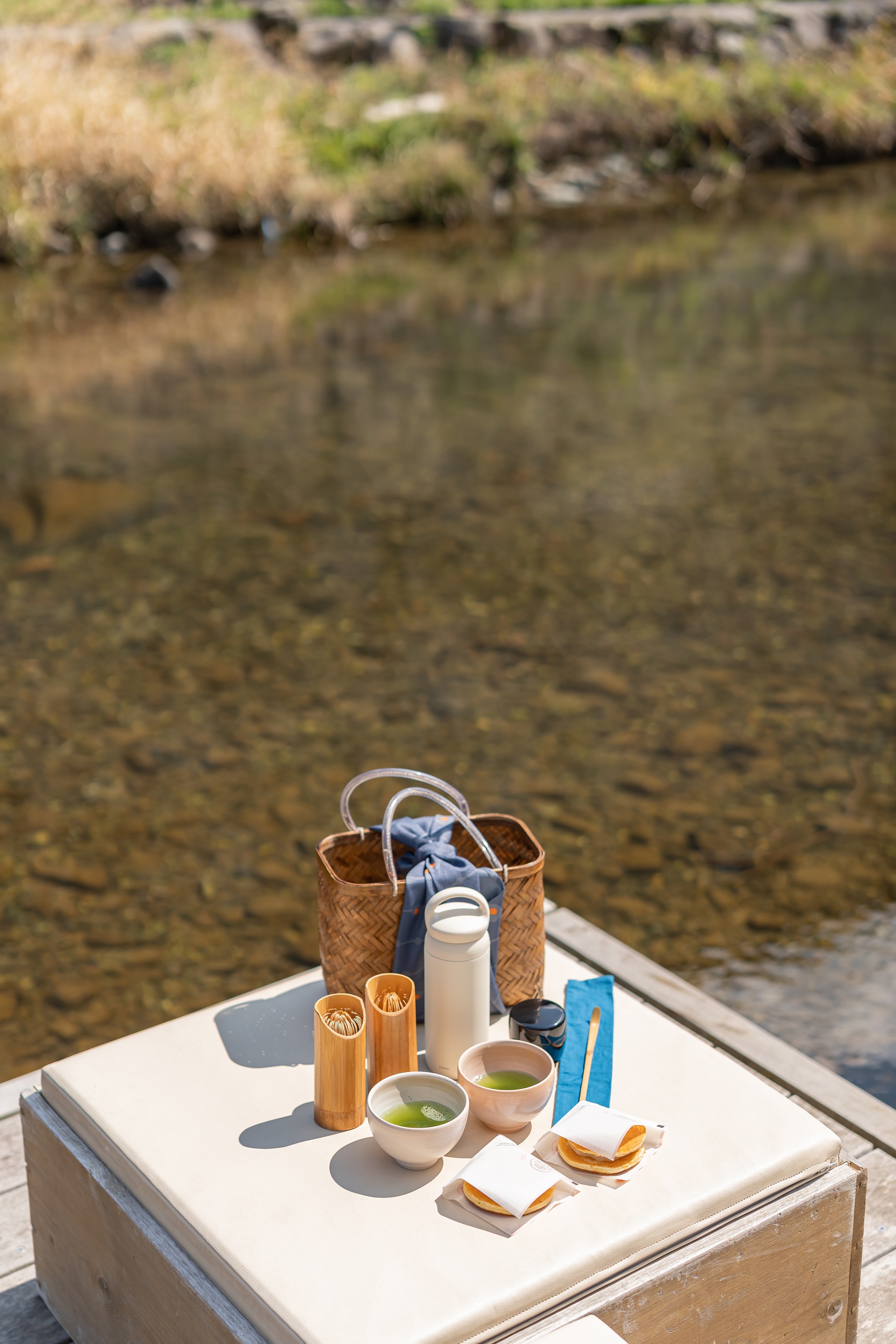 날씨도 좋아 봄 피크닉을 즐길 겸 카이 나가토의 도라야키와 말차를 사서 강으로 걸어갔습니다.