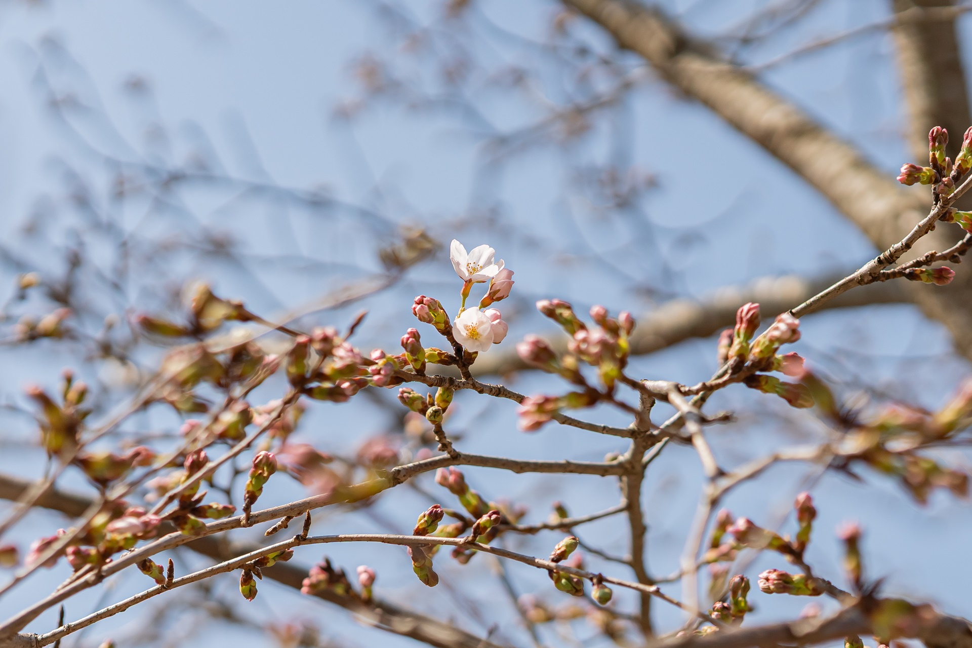 제가 찾았을 때의 벚꽃 모습 3월 22일 첫 날 한 두 개의 벚꽃이 피어 있었고 돌아가는 날에는 1/10 정도의 벚꽃이 피고 있어 더욱 아쉬웠습니다.