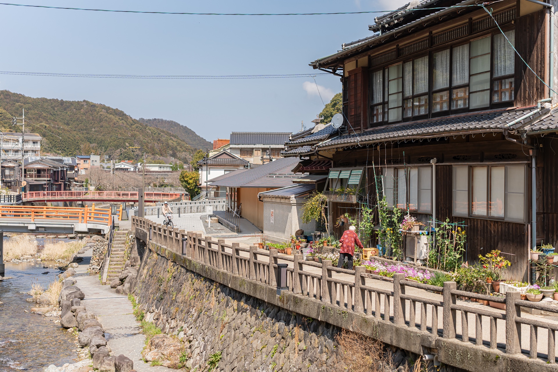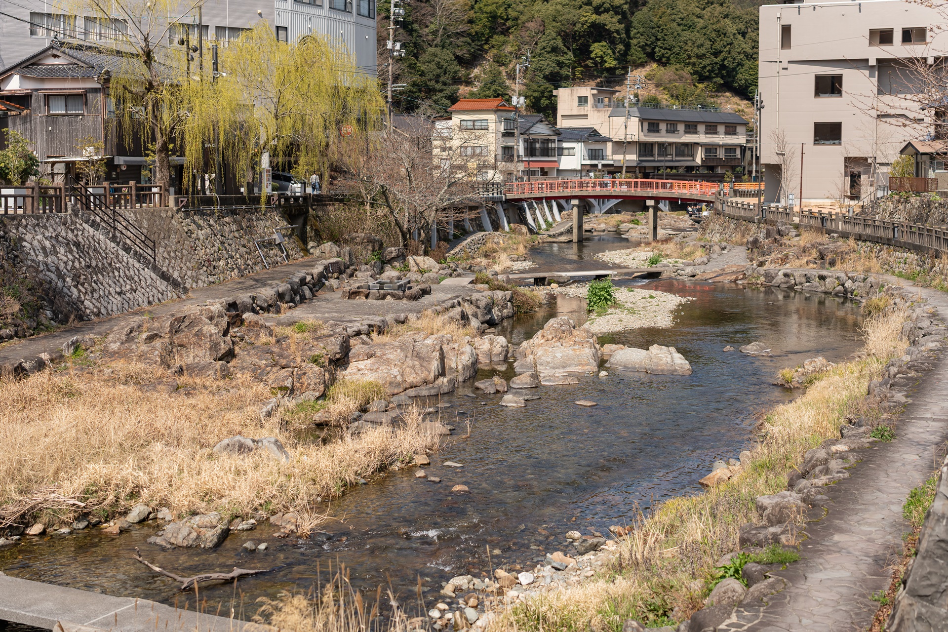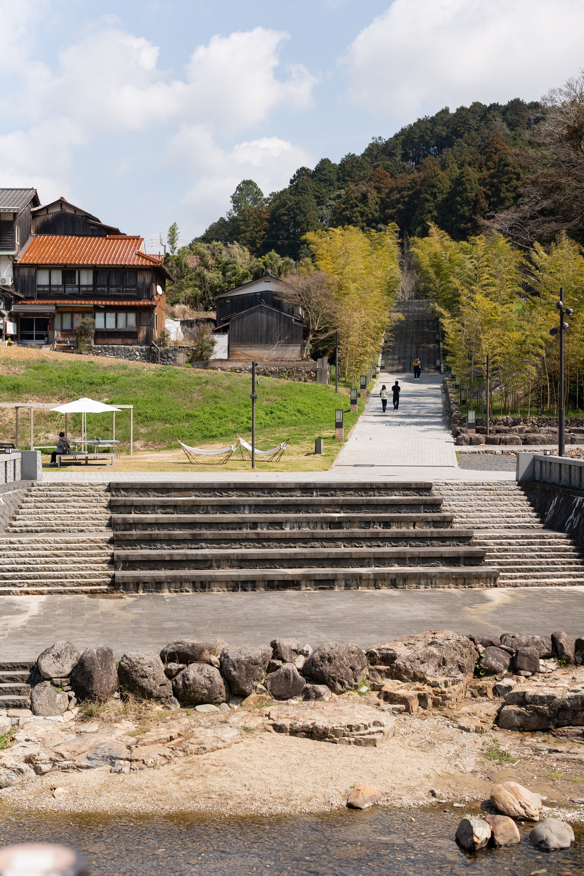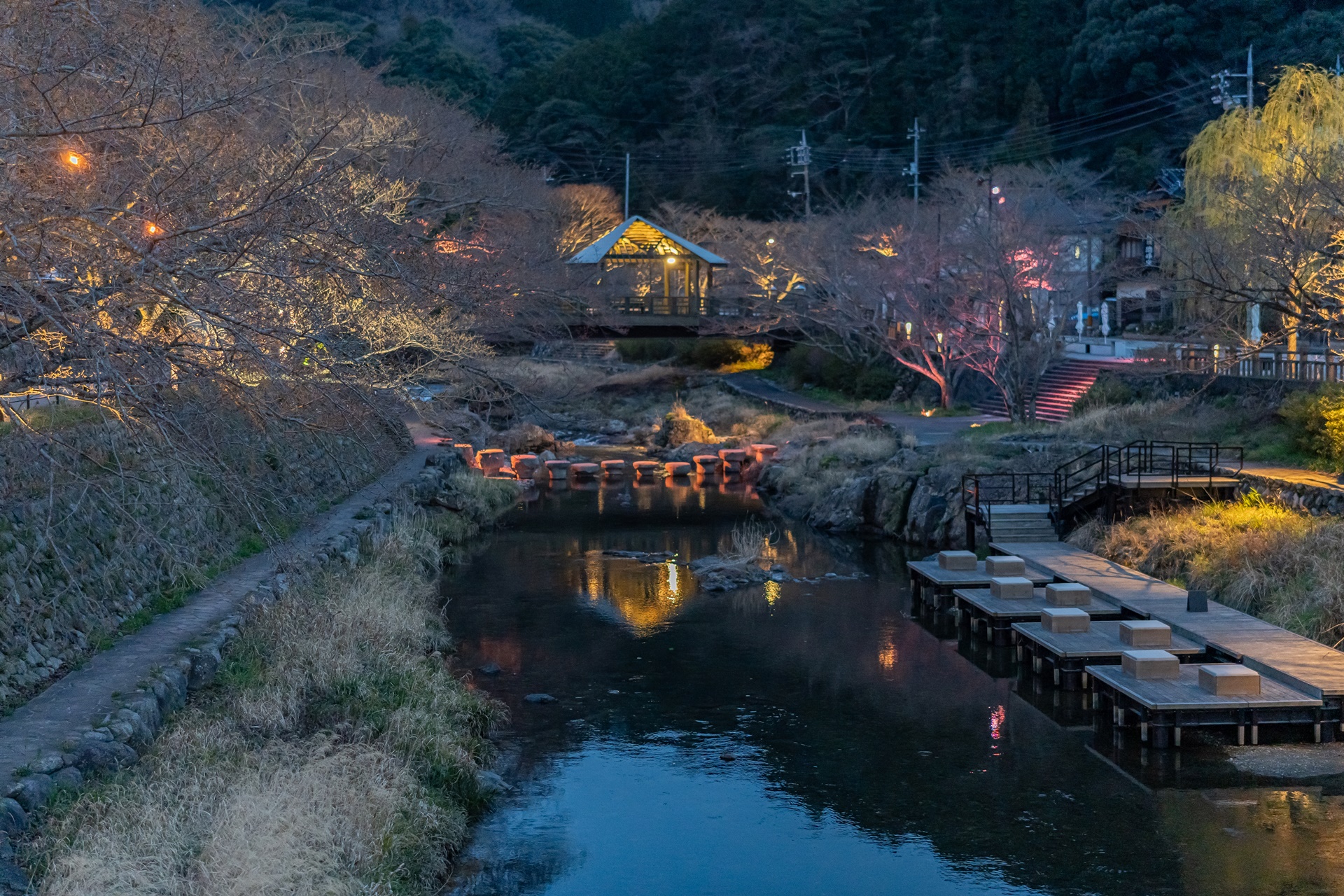 재개발의 물리적 핵심은 마을 중심을 흐르는 오토즈레강을 공간의 주인공으로 만든 것 입니다. 강 위의 테라스, 가와도코는 일본 내에서도 보기 드문 이 공간으로 사람들이 강물 소리를 바로 옆에서 들으며 족욕을 하거나 커피를 마시는 낭만적인 장소로 변모했습니다.