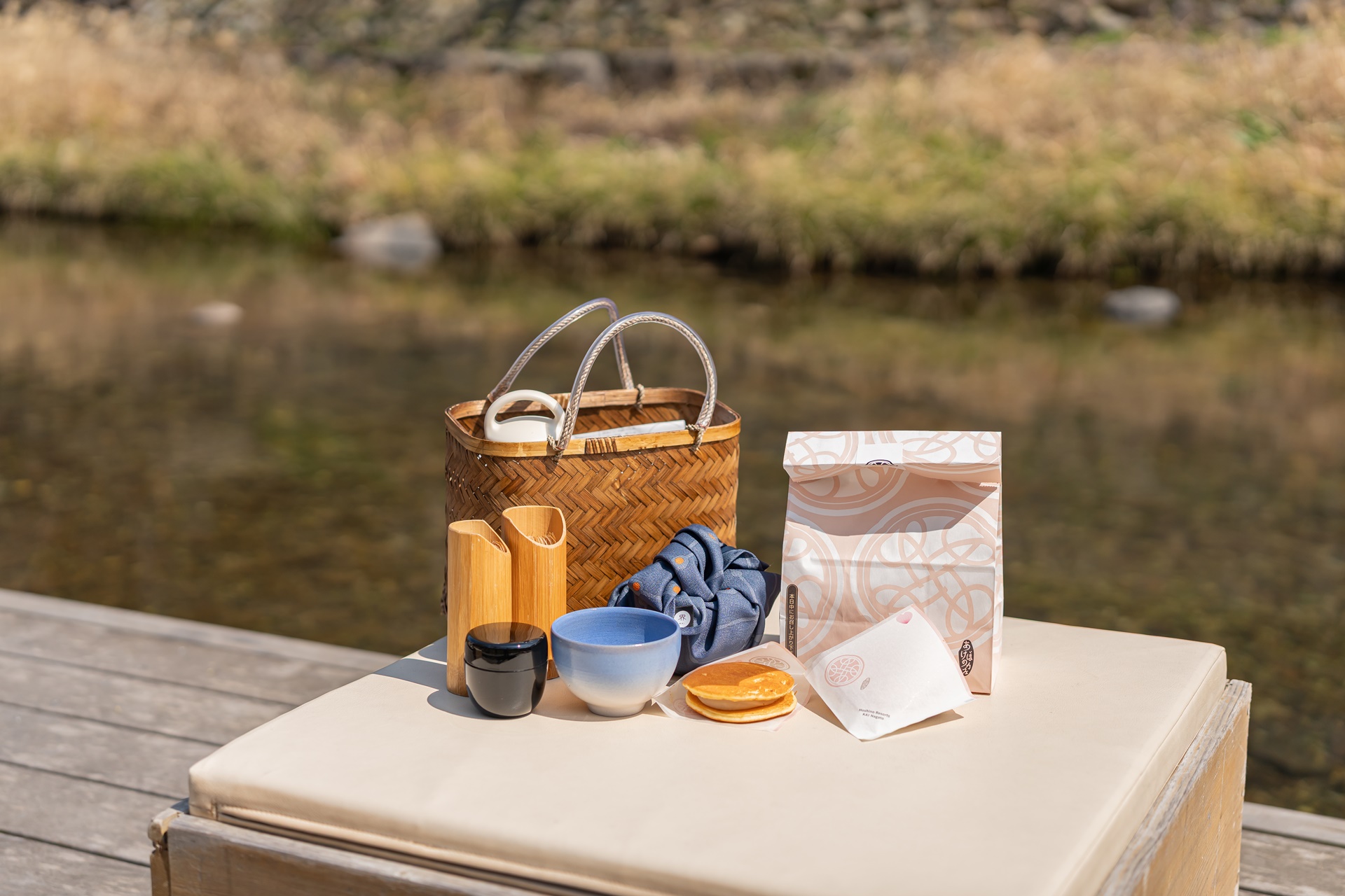 카이 나가토 주변에도 자리가 있으며 나카토 유모토를 흐르는 강가에도 피크닉을 즐길 수 있는 자리가 있습니다.