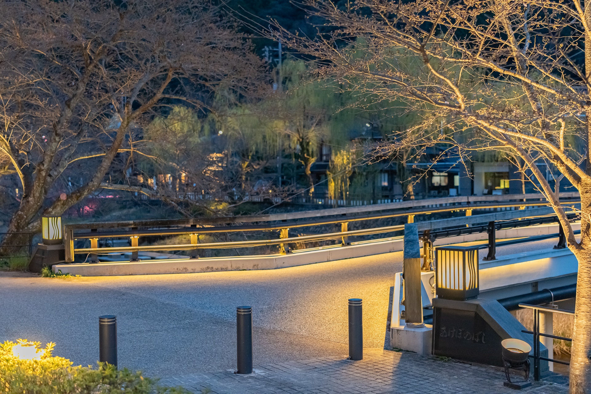 다리에서는 요자쿠라(밤 벚꽃) 아페로라는 행사의 사진을 찍고 있었습니다.