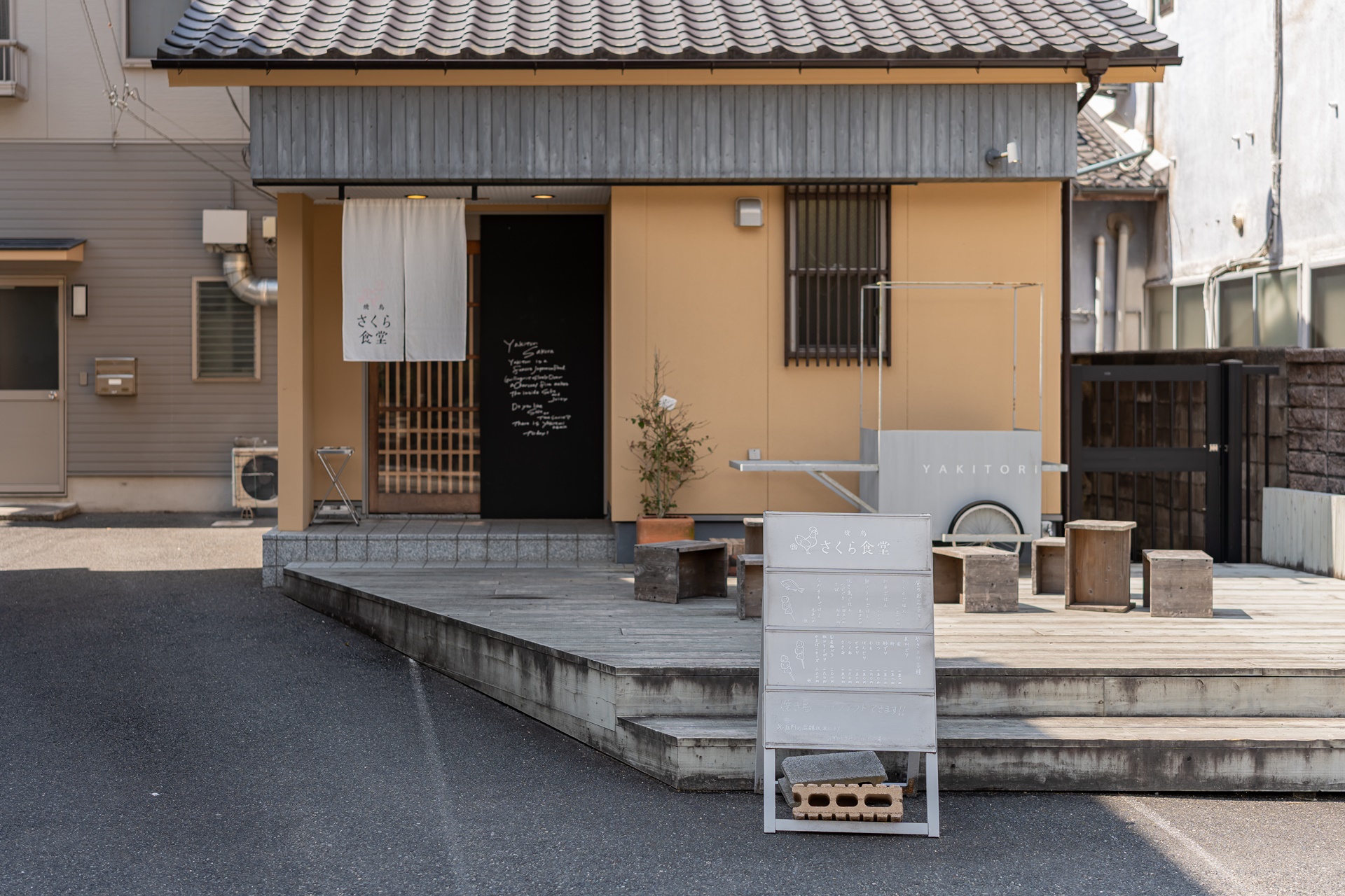나가토 유모토 온천의 중심부인 오토즈레강 변에 위치한 '사쿠라 식당(さくら食堂)'은 마을 재개발 프로젝트의 활기를 상징하는 대표적인 맛집으로, 일본 7대 야키토리(닭꼬치) 도시로 손꼽히는 나가토시의 자부심을 현대적인 감각으로 풀어낸 공간입니다.