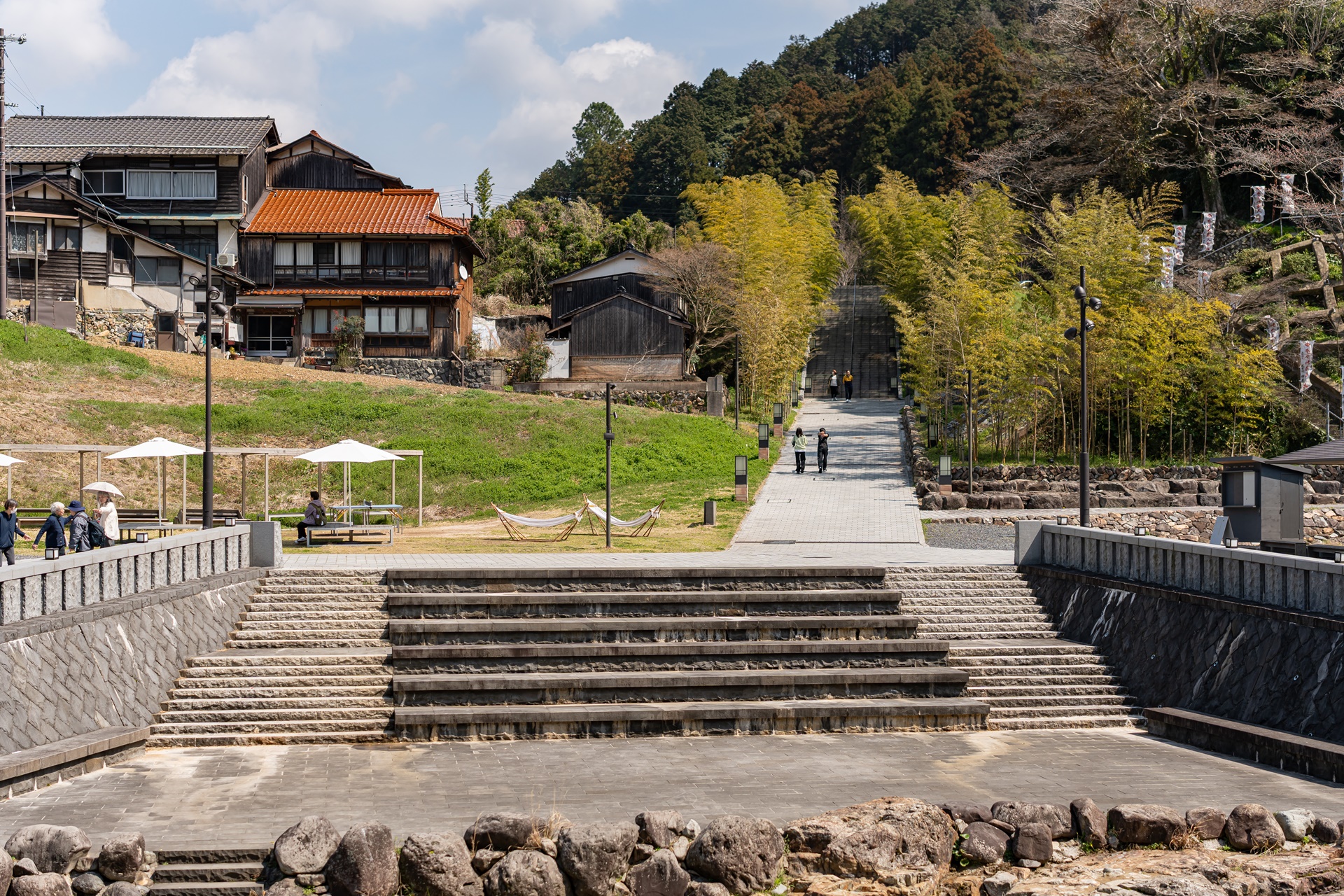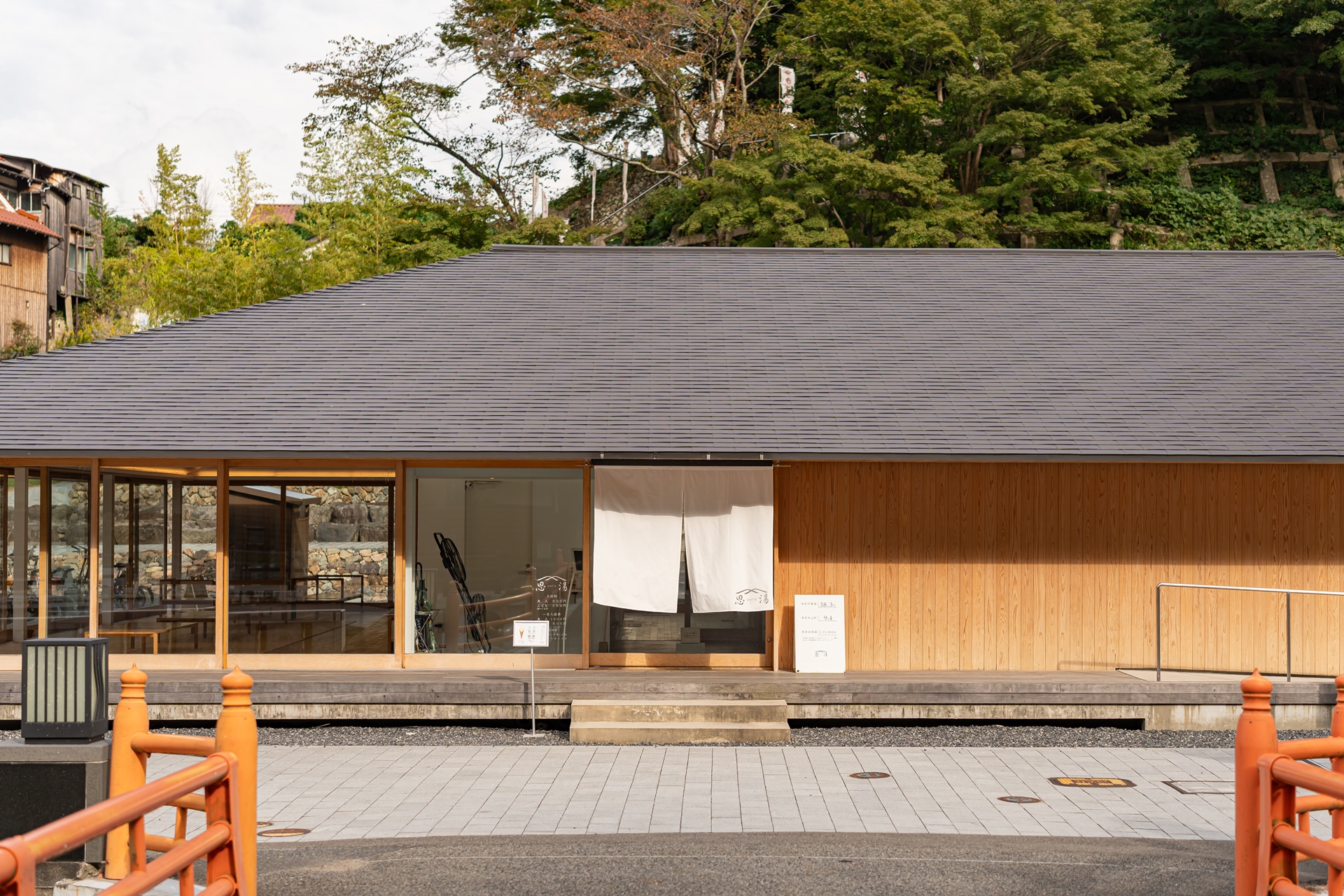 600년 역사의 공동욕장 '온탕(온토)'은 건축가 오카 쇼헤이에 의해 신사처럼 정갈하고 모던한 디자인으로 재탄생하며, 마을의 역사적 상징성과 세련미를 동시에 잡는 구심점 역할을 하게 되었습니다.